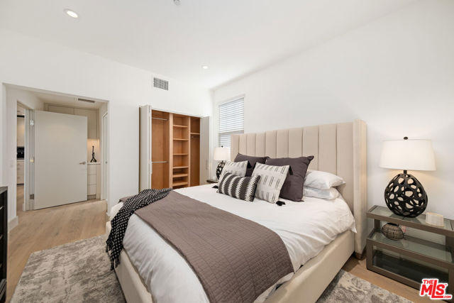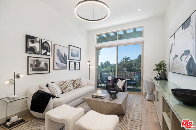 This spacious luxury unit is available with a 12-month lease term. The FLORENCE floor plan features keyless entry and offers two bedrooms and two bathrooms with private dual suite configuration and luxury bathrooms that have an oversized walk-in shower or tub. The open concept designer kitchen and dining area flows into the vaulted ceiling living room with built-in glass covered credenza. The kitchen is fully equipped with high-end appliances. An exterior balcony complements the floor plan and provides scenic views of The Getty. Villa Bel Air offers residents an array of modern amenities to level-up your lifestyle including a gym with top-tier equipment, central courtyard with fireplace, and a work lounge with state-of-the-art ROOM pods for conferencing and private meetings. Unwind by the koi pond in the lushly landscaped garden, bask in the sunshine at the outdoor penthouse lounge, or hit the grill area for an al fresco culinary adventure.