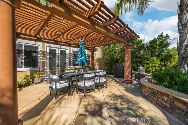 Fully Upgraded Amazing View House in Gated Turnleaf Community. This residence is a masterclass in Mediterranean elegance, where a sophisticated interplay of organic textures and expansive volumes creates a home that is both grounded and infinitely spacious. The exterior, anchored by heavy stone masonry, sandy stucco, and warm terracotta tones, harmonizes perfectly with an interior designed for effortless flow and multi-generational living, featuring a striking sense of openness and a versatile downstairs bedroom ideal for guests or a professional home office. Inside, the space is transformed by soaring double-height ceilings and oversized arched windows that treat natural light as a primary design element, illuminating polished stone-look tile floors that lead toward a grand upstairs master suite designed as a sanctuary of scale. Throughout the home, the transition between these grand spaces is softened by a neutral, earth-toned palette that echoes the natural beauty of the adjacent hillside, extending outdoors to a resort-style experience where the structural weight of dark-wood pergola columns meets the airy tranquility of a private backyard with no rear neighbors. By integrating modern sustainability through a rooftop solar array and low-maintenance synthetic turf, this property masters the balance between solid, protective materials and light-filled, airy spaces, offering a lifestyle defined by comfort, durability, and architectural grandeur.