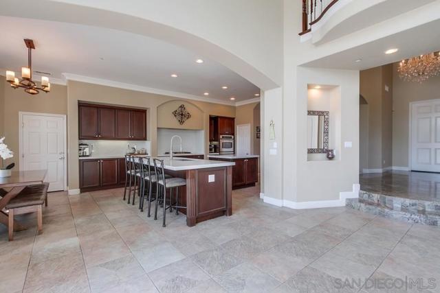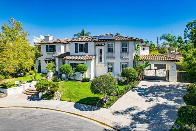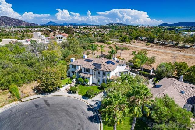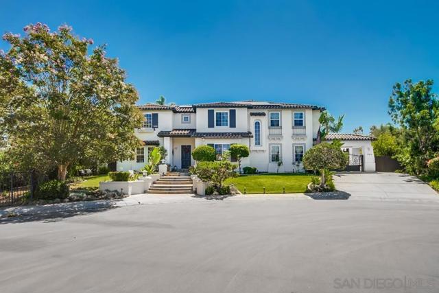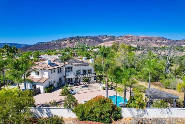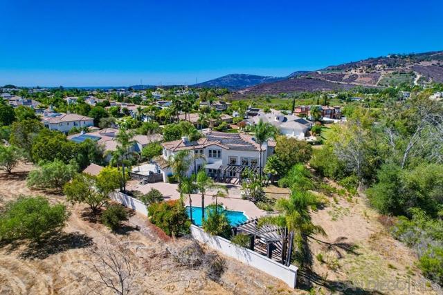 Located in the prestigious gated community of Bel Etage in Santa Fe Valley, this exquisite residence sits on a generous 0.4-acre cul-de-sac lot, offering both privacy and luxury in one of North County San Diego's most desirable neighborhoods. Surrounded by open space on one side and nestled at the end of a quiet street, this home offers 5 bedrooms with ensuite baths (1 BR/BA downstairs). The flexible floor plan offers formal living and dining rooms, a gourmet kitchen, a large family room with 20+ foot high ceilings, a luxurious primary retreat complete with a sitting room, double-sided fireplace, spa-inspired bathroom and a spacious walk-in closet.Step outside into your private backyard oasis, where resort-style living awaits. The expansive yard includes a sparkling pool, a built in BBQ, a covered sitting area, a custom-built Redwood Tea House, a cozy fire pit, and beautifully landscaped areas for lounging, dining, and entertaining under the stars. Additional highlights of this exceptional property include a four-car garage, owned solar and EV charger. Home is part of Poway Unified School District, known for its academic excellence. Located in the prestigious gated community of Bel Etage in Santa Fe Valley, this exquisite residence sits on a generous 0.4-acre cul-de-sac lot, offering both privacy and luxury in one of North County San Diego's most desirable neighborhoods. Surrounded by open space on one side and nestled at the end of a quiet street, this meticulously maintained home is part of an exclusive enclave of just 100 executive residences. Beyond the stunning front facade, you're welcomed into a grand entrance filled with natural light, soaring 20-foot ceilings, and a dramatic wraparound cascading staircase. The spacious and flexible floor plan offers formal living and dining rooms ideal for entertaining, while the thoughtfully designed gourmet kitchen is the heart of the home. Featuring dual granite-topped islands, stainless steel appliances, a new designer backsplash, and two walk-in pantries, the kitchen flows seamlessly into a cozy breakfast nook and an inviting family room. A hidden room tucked off the main floor adds a unique touch, perfect for use as a wine cellar, playroom, or a dedicated home office or gym tailored to suit your lifestyle. The first floor includes a private guest suite with its own full bathroom, while the upstairs is highlighted by a luxurious primary retreat complete with a sitting room, a romantic double-sided fireplace, a spa-inspired bath with soaking tub, dual vanities, and a spacious walk-in closet. Three additional upstairs bedrooms each feature their own ensuite bathrooms, providing comfort and privacy for family or guests. Step outside into your private backyard oasis, where resort-style living awaits. The expansive yard includes a sparkling pool, a built in BBQ, a covered sitting area, a custom-built Redwood Tea House, a cozy fire pit, and beautifully landscaped areas for lounging, dining, and entertaining under the stars. Additional highlights of this exceptional property include a four-car garage, owned solar and EV charger. Home is part of Poway Unified School District, known for its academic excellence. Ideally located west of Rancho Bernardo and just east of Rancho Santa Fe, this elegant estate offers proximity to top-rated schools, scenic hiking trails, and all the best that North County has to offer. This is more than a home it's a lifestyle.