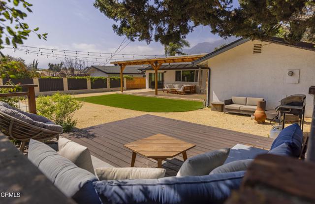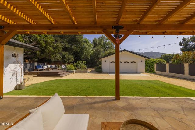 FOR LEASE- Offered Fully Furnished- Extensively Renovated Ranch House on nearly half an acre in Ojai's desirable East End. Tucked away in a private setting surrounded by lush orchards and breathtaking views of the Topa Topa Mountains. Inside, the spacious and thoughtfully designed floor plan features a stunning fireplace in the spacious living room ideal for relaxing or entertaining and a gourmet kitchen which opens to the spacious backyard. With three generously sized bedrooms and two beautifully remodeled bathrooms, the home provides ample space for both family and guests. The inviting primary suite opens directly onto a sunlit backyard patio, complete with a covered pergola perfect for year-round entertaining. Further into the yard, under the shade of a grand live oak tree, you'll find a second outdoor gathering space featuring a gas fire pit and expansive lawn area ideal for unforgettable evenings with loved ones. Additional highlights include a detached two-car garage and plenty of extra parking for an RV, boat, or camper. This East End gem offers the best of Ojai living natural beauty, privacy, and stylish comfort ready for you to move in and enjoy. Minutes to downtown Ojai and nearby hiking trails!
