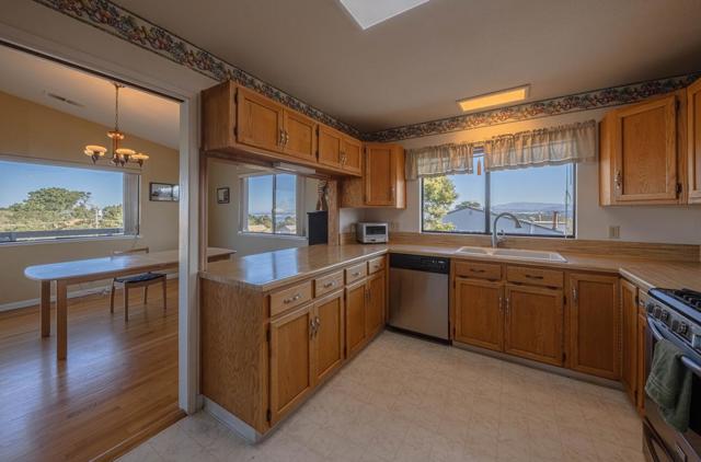Elegant 3 bedroom, 2.5 bath residence offering over 2,200 square feet of thoughtfully designed living space, exclusive of the basement and two-car garage. The upper level features a light-filled kitchen, dining area, and living room, along with a spacious primary suite with full bath. Sweeping ocean and Monterey views can be enjoyed from the kitchen, dining room, living room, and adjoining deckcreating an exceptional setting for both daily living and entertaining. A convenient laundry and pantry area, along with a half bath, complete the top floor. The lower level includes two additional bedrooms, a full bath, a generous family room, and a second deck offering tranquil ocean views. Beautiful oak hardwood floors run throughout the home, including the stairwell and banister, adding warmth and timeless character. The charming front yard is enclosed by a classic Carmel stone wall, providing an inviting seating area, while the backyard features a shed for added storage. Ideally located just a short walk from downtown Monterey, this exceptional home combines breathtaking views, functional design, and an unbeatable locationa rare opportunity to enjoy the very best of Monterey living.