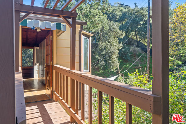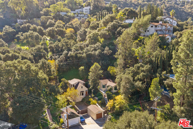 UNIQUE OPPORTUNITY! Enchanting hillside complex with 2 houses on 1 lot located in the Hollywood Hills West near Universal Studios. Ideal artist retreat / creative space for a Musician, Writer, Artist, Film / TV Editor, etc. Fantastic outdoor decks for entertaining guests. Ideal for an avid Gardener. Create your own Wonderland. // Primary (2-Story) Town House: Lower Floor: Enter into a bright spacious living room with wood floors. Open concept Dining area easily accessible to beautifully updated kitchen with stainless steel appliances and artistic colorful backsplash. Crisp bathroom with classic subway tiles and bathtub / shower plus linen closet. Upper Floor: Dreamy bedroom is a rustic wood paneled loft space with vaulted ceilings, cozy fireplace and scalloped-trimmed windows. Spacious armoire closet with drawers. Updated bathrooms with white subway tiles and blue accent tiles. Plus, 2 sinks and plenty of storage space. // Secondary (1-Story) Dream Cottage: Perfect for a work studio / office space or guests. Living room with bay window and decorative fireplace. Bathroom with vintage pink and white tiles complimented with classic subway tiles. Rustic kitchen with vintage tiles. Separate Dining Area off kitchen. Spacious bedroom with closet. Washer / Dryer for both houses. // One car detached garage with EV Charger with additional parking space with 2nd EV Charger. RV / Boat parking available. Outdoor patio with fenced-in dog-friendly yard. Bountiful storage underneath the main house. Magical bridge walkway to secondary house. Convenient central location. Close to Universal Studios / City Walk, NBC Universal. Easy access to 101 FWY and Ventura Blvd teaming with restaurants and shops.