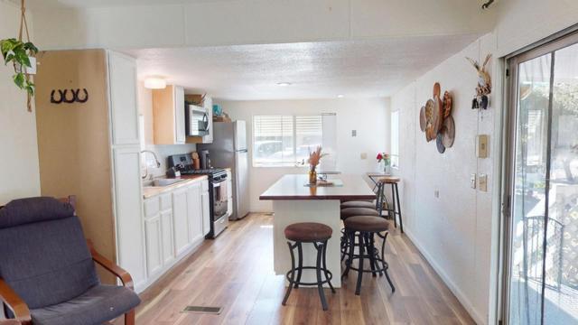 Tucked into a peaceful, tree-lined setting in Prunedale, this inviting 2-bedroom, 1-bath home offers the perfect blend of comfort, charm, and everyday ease. With approximately 720 square feet, the layout feels open and welcoming, highlighted by a kitchen that flows seamlessly into the living area, ideal for entertaining, relaxing, or simply enjoying the rhythm of daily life. The oversized island anchors the space, creating a natural gathering spot for meals, conversation, and morning coffee. Newer flooring runs throughout the home, adding warmth, durability, and low-maintenance appeal. Step outside and enjoy the tranquility of a forest-like setting, where mature trees and open surroundings create a sense of privacy and calm that's hard to find. The covered entry and outdoor space offer room to unwind and enjoy the fresh air. Conveniently located near Highway 101, shopping, dining, and within the North Monterey County Unified School District, this home is ideal for anyone seeking a peaceful retreat with easy access to Monterey, Santa Cruz, and San Benito Counties. A rare opportunity to own an affordable, move-in ready home in a serene natural setting. Come see it in person and experience the lifestyle this special property has to offer.