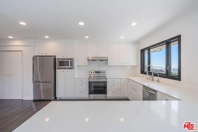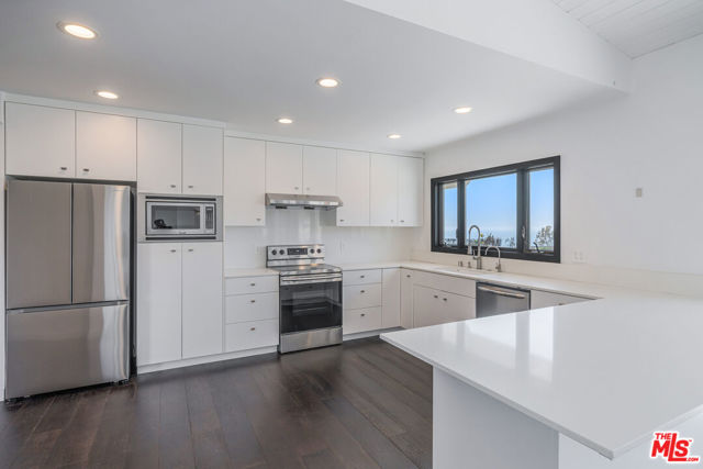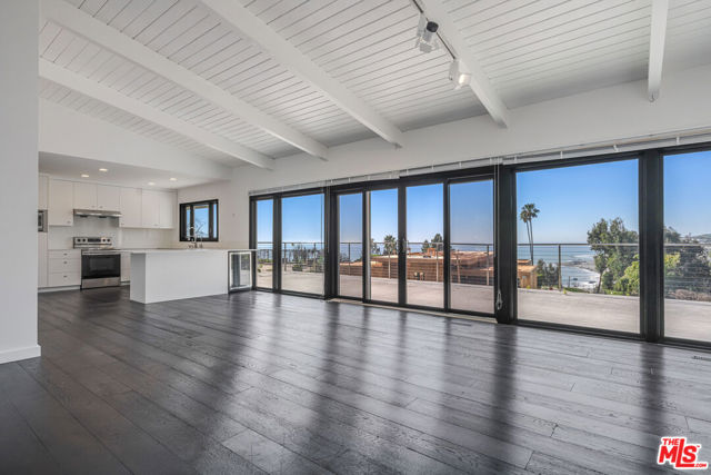 Perched on a quiet street in the Palisades with sweeping ocean and hillside views, 17921 Vicino Way is beautifully updated, offering the perfect blend of light, space, and indoor outdoor living. This 3-bedroom, 2-bathroom home spans 1,815 sq ft and sits on an expansive 8,316 sq ft lot. Vaulted, beamed ceilings and wide plank dark wood floors create a dramatic yet warm atmosphere throughout the main living spaces. Floor-to-ceiling sliding glass doors open to a large view deck, capturing ocean breezes and stunning coastline vistas while seamlessly extending the living and dining areas outdoors. The kitchen is clean and modern with white custom cabinetry, stainless steel appliances, ample storage, and a layout that flows effortlessly into the living spaces. The primary suite features a serene retreat with direct outdoor access and a remodeled bathroom finished with sleek cabinetry and a glass-enclosed shower. Additional bedrooms are filled with natural light, making them ideal for families, guests, or a home office. The garage also has a convenient Tesla Charging station. Outside, the generous lot offers privacy, usable outdoor space, and room to entertain or relax while taking in the views. Located moments from the beach, coastal trails, and the heart of Pacific Palisades, this home offers a rare combination of views, style, and livability in one of the area's most desirable neighborhoods. The home has been professionally remediated.