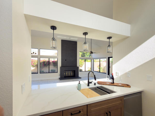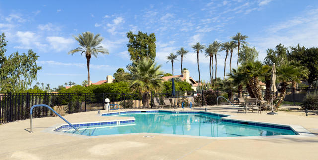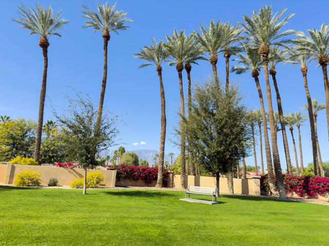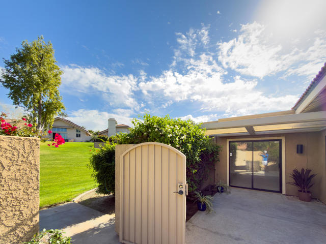 Welcome to a truly rare opportunity to own one of Silver Sands' desirable Premier Lots, ideally tucked into a quiet cul-de-sac with a shared wall on only one side. Located within the prestigious guard-gated Silver Sands Racquet Club, this beautifully upgraded, single-level G-Plan residence offers the perfect blend of privacy, style, and resort living.Soaring ceilings and an open-concept layout fill the home with natural light, creating an airy and welcoming atmosphere throughout. The interiors have been thoughtfully reimagined with a contemporary touch, featuring fresh bright paint, new baseboards, trim, interior doors, and stylish lighting and ceiling fans.The newly remodeled chef's kitchen opens seamlessly to the living and dining areas and showcases modern soft-close cabinetry, high-quality quartz countertops, a custom backsplash, and a breakfast bar-ideal for entertaining. Brand-new Samsung appliances include the latest oven with air-fryer technology and an auto-release dishwasher.The great room is surrounded by windows with solar-powered motorized shades and anchored by a cozy fireplace, perfect for cool desert evenings. This home offers two spacious primary suites, each with upgraded bathrooms featuring dual-sink quartz vanities, new ceiling fans with integrated lighting and remote controls, and easy access to the outside.Additional highlights include a climate-controlled garage with ample storage and a private courtyard with a pergola creating an ideal spot to enjoy serene desert mornings and relaxing evenings. The home also offers direct gated access to nearby pools and spas, just steps away.Silver Sands Racquet Club is one of the desert's most coveted communities, featuring only 256 homes and an unbeatable location adjacent to the JW Marriott Desert Springs Resort and across from Desert Willow Golf Resort, where Palm Desert homeowners enjoy discounted golf rates.Residents enjoy a true resort lifestyle with a clubhouse for social activities, 7 lighted tennis courts, 4 pickleball courts, on-site pros during season, a fitness center, and 15 pools and spas-all included in the HOA. HOA dues also cover roof and exterior maintenance landscaping, cable TV, internet, trash service, and 24-hour security.Silver Sands Racquet Club has everything you need to make every day feel like a vacation.