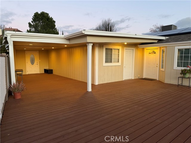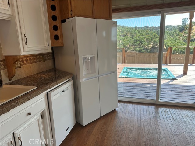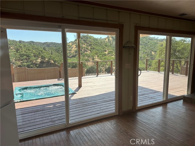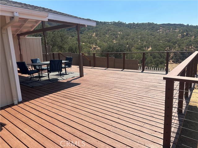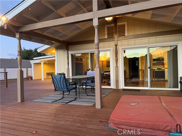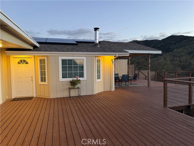 Incredible Vacation Home located at Lake Nacimiento's Heritage Ranch. EXCELLENT VIEWS over an impressive canyon landscape to the rear give a wonderful sense of openness and seclusion. Enter the property through a unique covered 'breezeway' connecting to a massive newly rebuilt wrap around deck with build in hot tub. Once in the home you'll find an open concept living and kitchen area filled with natural light from two large glass sliders overlooking the views and covered back deck. Privacy walls on both sides of the deck provide separation from neighbors and a great extension of the living space. The kitchen includes granite counters, recessed lighting, and all new appliances. The wide driveway and 30' deep garage allow for ample parking as well as storage of boats and other lake accessories. There is a finished area at the back of the garage that used to function as a small third room, but has been now been opened to make the garage deeper. The home is very well maintained and has a New Roof, New Heating & Air Conditioning Unit and the entire back deck is newly rebuilt. The home also includes a brand new 8.2kW Solar System with Battery Storage, which will save you thousands per year on heating and cooling costs. This is NOT a modular home, it is a stick-built, single-level lake cabin that is turn key and ready for many years of peace and comfort. Must see to appreciate, come check it out before someone else snags it.
