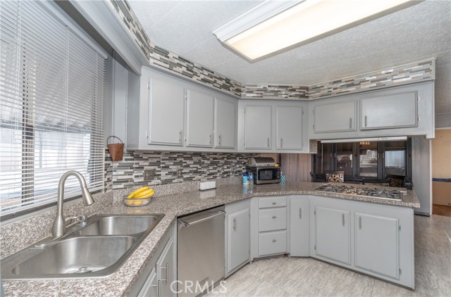 This beautifully maintained 1979 Silvercrest triple-wide offers 3 bedrooms and 2 full bathrooms with an open, inviting layout designed for comfortable living. The expansive living room flows seamlessly into the dining area and open kitchen, complete with a convenient bar area—perfect for entertaining or everyday living. Set on one of the best lots in the community, this home enjoys a serene greenbelt just outside the front door, adding privacy and a peaceful outdoor setting. The generous primary suite is a true retreat, featuring ample closet space and a private en-suite bath. Additional highlights include inside laundry and a private backyard ideal for relaxing, gardening, or hosting guests. The well-maintained community offers resort-style amenities including a pool, spa, two tennis courts, a putting green, recreation room, and a charming country store. This is a must-see home that combines space, comfort, and affordability—you’ll love it. Schedule your showing today!