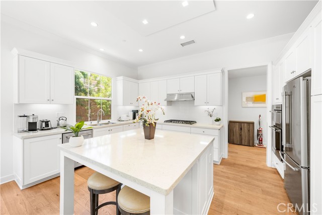 Corner lot, furnished! Dual master bedrooms downstairs and upstairs! Whole house wood like flooring. Welcome to this charming single family home by Irvine Pacific located in the highly sought-after and popular neighborhood of the Eastwood community in the heart of Irvine. The open-concept living area seamlessly connects the living room, dining space, and gourmet kitchen. The kitchen features complementing stainless steel appliances and sleek countertops, with sliding glass doors leading to the neat backyard. There is a bedroom suite on the first floor, ideal for convenience or guests, and a master suite along with two additional bedrooms on the second floor.designer hard wood flooring throughout, LED Recessed Light with crown molding, and attached 2-car garage. Enjoy open chef's kitchen with ample cabinet space, large quartz kitchen island. This home a conner lot, no neighbors on one side, very convenient location to walk to all the beautiful parks, private community swimming pools, spas, clubhouses, tennis courts, playgrounds, picnic areas, and walking/biking trails. Within walking distance is Eastwood Elementary School, situated at the community's center. Additionally, the top-rated and award-winning Northwood High School and Sierra Vista Middle School are conveniently nearby. must see, won't last