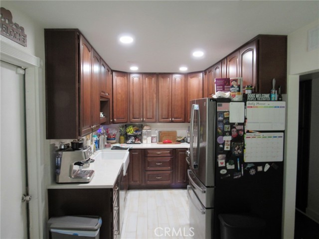 This home has a lot to offer. It has a nice floor plan, newer dual pane windows throughout. There have been extensive upgrades making this home shine. The kitchen has totally been redone with Craftmade cupboards with pull out drawers and soft close cabinets. It has quartz counters, recessed lights, a farm style kitchen sink and stainless steel stove and dishwasher. There is new luxury vinyl flooring throughout the house. The HVAC is new along with the concrete block wall in the backyard. There is a fully paid for solar system that will also transfer with the home. The whole yard is fully fenced, it has an extended drive way, a covered patio and a dog run. There has been a lot of care and attention to making this home shine. There is also a master cool, crown molding inside and other details you will enjoy if you make this house your home. There are numerous trees that include a lemon, pomegranate and fig. The numerous plants and bushes are enclosed in garden boxes. Inside is a traditional floor plan that includes a separate dining area, upgraded hall bathroom and large walk in closets in 2 of the 3 bedrooms. This home is waiting for new owners and is a regular sale.