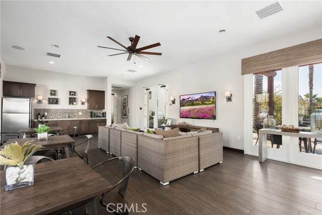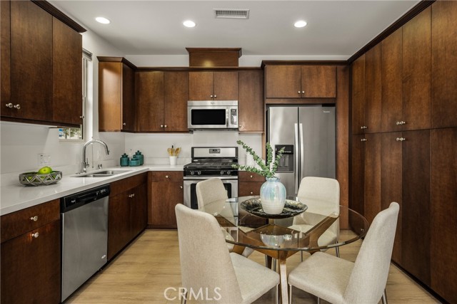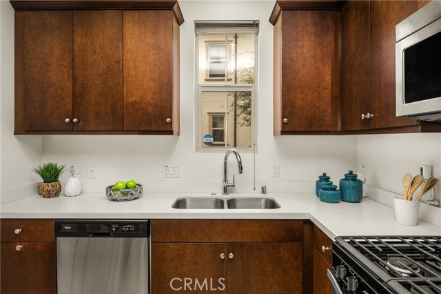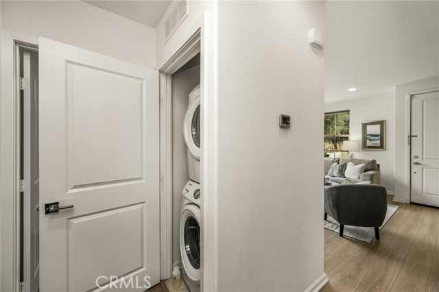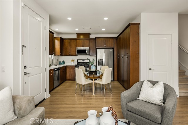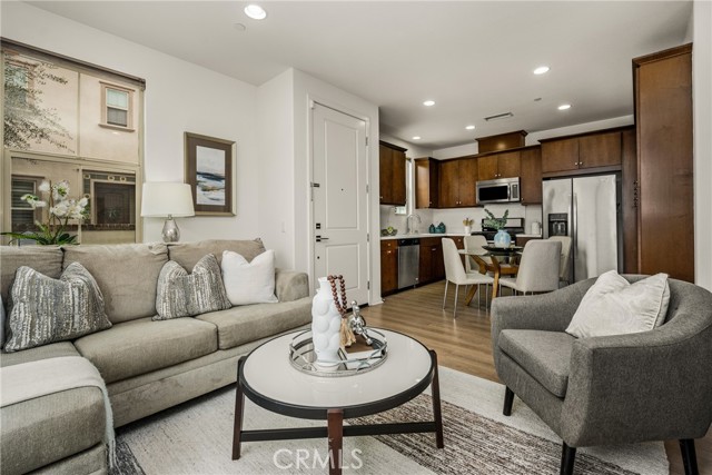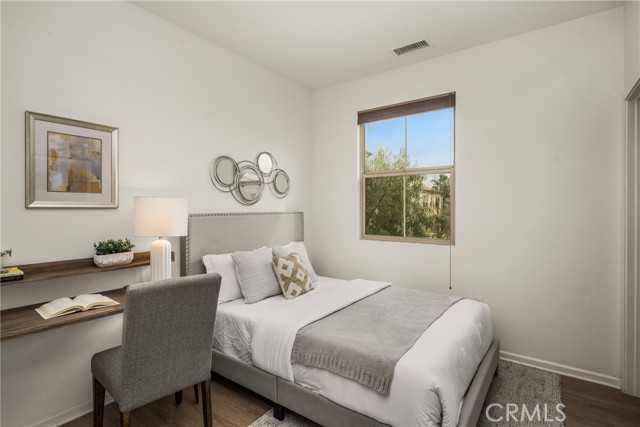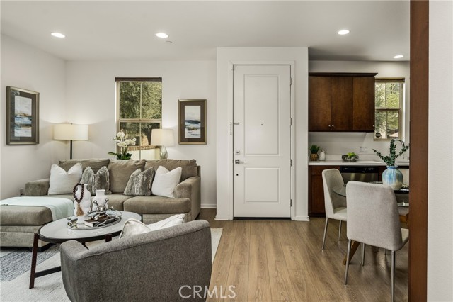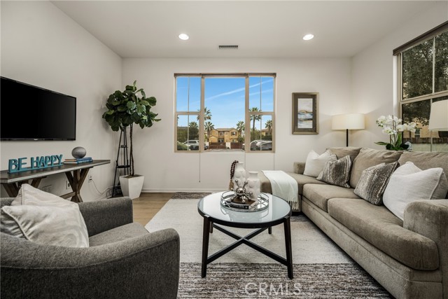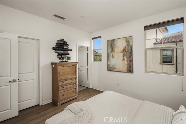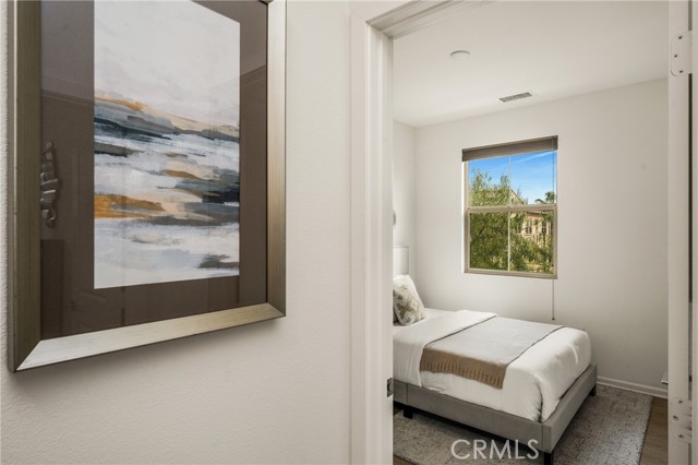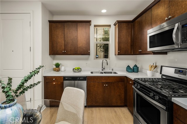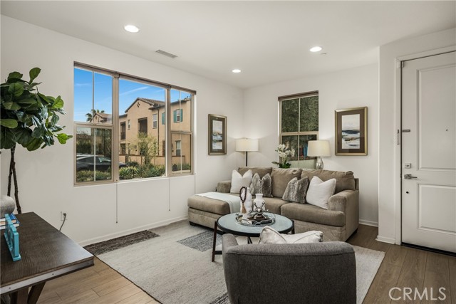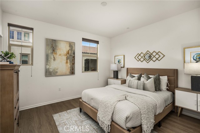Resort-style living with low HOA and no Mello-Roos—this turnkey townhome checks all the boxes! Welcome to this beautifully upgraded 2-bedroom, 2.5-bath residence with an attached two-car garage, set on a corner location in the scenic hills of Foothill Ranch. Located within the highly desirable, gated, Spanish-inspired community of El Paseo, this home offers comfort, style, and everyday convenience. Thoughtfully designed across two levels, the residence welcomes you through a charming private patio—perfect for enjoying your morning coffee or unwinding at the end of the day. Inside, an open and airy floor plan seamlessly connects the kitchen and living space, creating an ideal setting for everyday living and entertaining. The kitchen is highlighted by quartz countertops, rich wood cabinetry, stainless steel appliances, and luxury vinyl flooring. The light-filled living room features large windows with Bali shades, providing a warm and inviting atmosphere. The main level is complete with a half bath, an indoor laundry closet, a coat closet, and direct access to the two-car garage. Upstairs, both bedrooms offer private en-suite bathrooms. The primary suite includes a custom bathroom with a single vanity, a walk-in shower, and a generous walk-in closet. The secondary bedroom features a spacious closet and an en-suite bathroom with a single vanity and a shower-tub combination. Additional upgrades include recessed lighting, baseboards, and epoxy flooring in the garage. Residents enjoy access to El Paseo’s resort-style amenities, including a pool, clubhouse, and playground. Conveniently located near shopping, dining, grocery stores, entertainment, parks, and miles of hiking and mountain biking trails. This home offers the perfect blend of comfort, style, and lifestyle convenience. Hurry-At this price, it won't last long!
