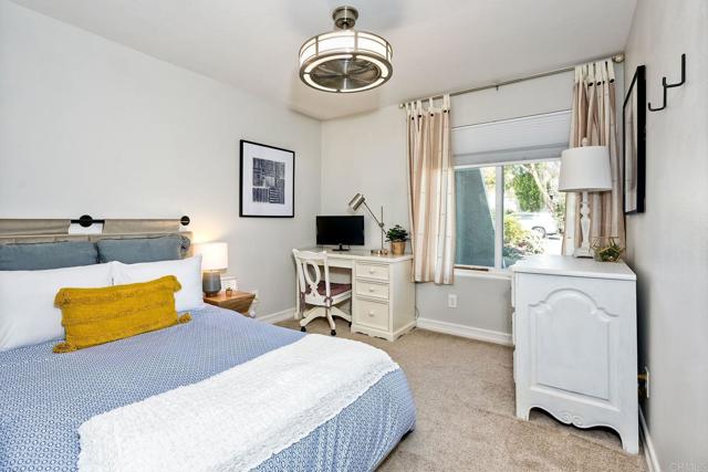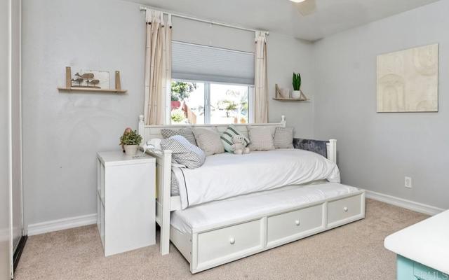 Spacious and stylish 4BR/2BA in the coveted Laguna Riviera neighborhood. Ideal location delivers the ultimate SoCal lifestyle. Walk to top-rated Kelly Elementary, park, trails, and scenic Hedionda Lagoon Shoreline. Minutes to sandy beaches and vibrant Carlsbad Village. Home features soaring ceilings and bright, open living spaces. Abundant windows bring in natural light and coastal breezes, enhancing this classic split-level floor plan and indoor-outdoor living. Upon entry, the home offers a full-size dining area and an expansive kitchen with a large island seating six, double refrigerator, and 48” Italian stove—ideal for entertaining. Upstairs includes a cozy loft with gas fireplace and treetop-style views, along with the primary suite featuring a walk-in closet, remodeled bath, and balcony. Three additional bedrooms are downstairs with one bathroom. The third bedroom is large (17x13) with sliding glass doors to backyard which can be used as bonus room, or guest/office combo. Large, private lot with fruit trees, covered patio, pergola, and potential space for an ADU (buyer to verify zoning and permits). Very private and serene. Quiet street and desirable location. *Option to purchase fully furnished.*