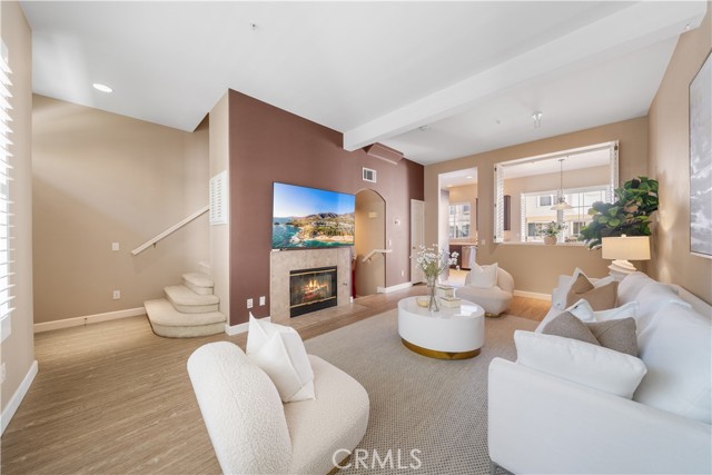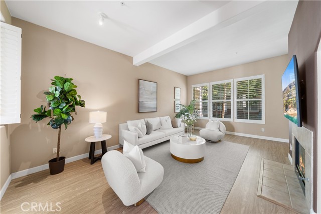 Welcome to Venturanza Resort Community, where stunning Plan C offers a spacious two-master-bedroom layout, an extra half bath, and a versatile bonus room—ideal for hobbies, fitness, or flexible living space. The inviting living area features oversized windows that frame picturesque outdoor views, complemented by a warm fireplace and sleek laminate flooring. Host gatherings with ease in the dedicated dining space, while the bright, cheerful kitchen boasts warm tile countertops, stainless-steel appliances, and a cozy casual eating nook—plus direct access to your own private patio for weekend barbecues. Upstairs, both well-appointed bedrooms serve as master suites, each with a generous walk-in closet. One suite includes a relaxing oval soaking tub and a separate shower. Thoughtful details throughout include plantation shutters, neutral tones, and ceiling fans. Additional highlights include a two-car attached garage with epoxy flooring and access to lush community grounds featuring a pool and spa. Enjoy a prime location near Tustin Sports Complex, Tustin Ranch Golf, shopping, and top-rated schools. Tree-lined streets provide peaceful living, while easy freeway and toll road access—just a mile away—adds everyday convenience. This is resort-style living made practical—don’t let it pass you by!