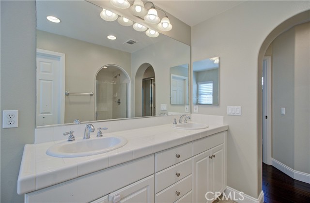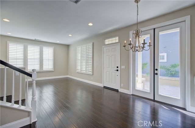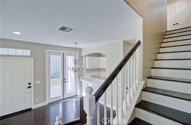 Outstanding detached three-bedroom home located in the desirable Surrey Farm community of Ladera Ranch. Charming white picket fence offers excellent curb appeal. Bright living room features a cozy fireplace, custom built-in media cabinets, plantation shutters, and crown molding, and opens to the dining area. Upstairs primary suite offers volume ceilings, a private balcony, and a luxurious bath with dual sinks, jacuzzi tub, separate shower, and walk-in closet. Two spacious secondary bedrooms, shared bath, and convenient upstairs laundry complete the home. Tastefully upgraded with dark hardwood flooring throughout and fresh interior and exterior paint. Close to parks, community pool, greenbelts, and hiking trails. Ladera Ranch amenities include clubhouses, resort-style pools, water park, tennis and pickleball courts, basketball courts, skate park, miles of trails, year-round events, and award-winning schools.