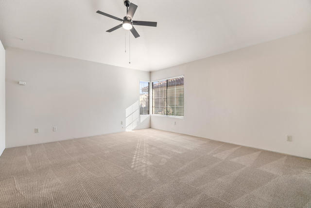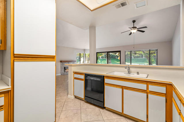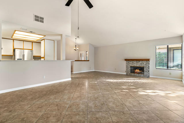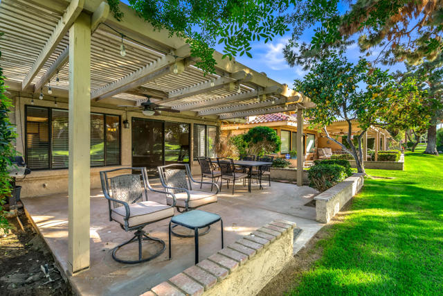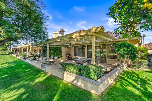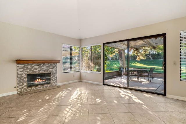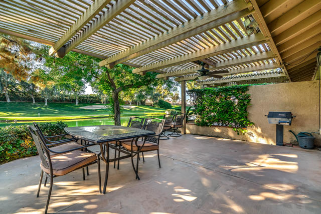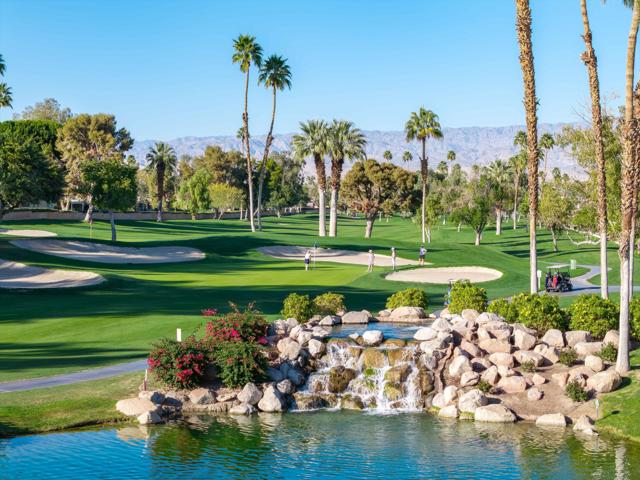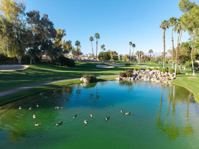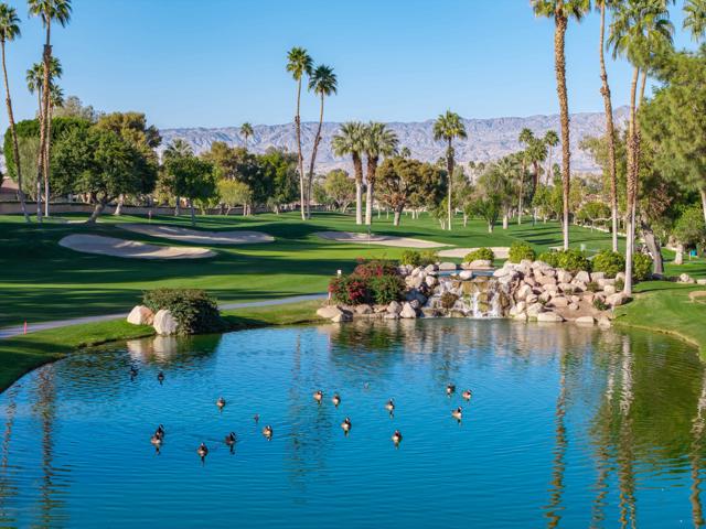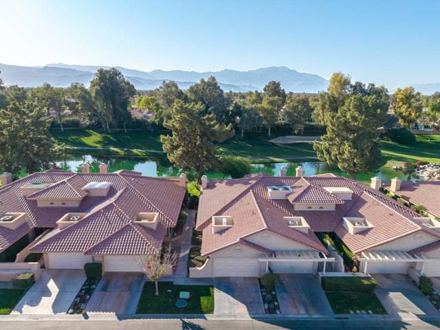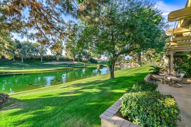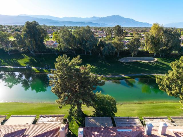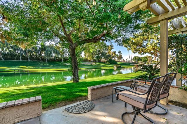 Welcome to this quiet, beautifully positioned 2-bedroom, 2-bath end-unit condo offering 1,392 sq ft of comfortable desert living in Woodhaven Country Club. Enjoy splendid patio views overlooking the lake and golf course, framed by tall, mature trees beyond the fairway--an ideal setting for relaxing or entertaining. As one of the very last condo units built in the community, this residence features a newer air conditioning system and the added privacy of an end unit.Woodhaven Country Club offers an exceptional lifestyle with resort-style amenities including golf, tennis, pickleball, an active clubhouse, fitness center, four heated pools and spas, plus cable, internet and WiFi included. The location is unbeatable--just a short walk to grocery shopping and dining. All furnishings have been removed and the carpets freshly cleaned, making this home move-in ready. Priced to sell, this is a wonderful opportunity to enjoy all that Woodhaven CC and the desert have to offer from a truly prime location.