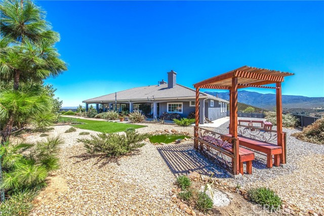 You truly can have it all! Welcome to 47298 Twin Pines Road, a bespoke executive residence set on over two-and-a-half rustic acres along the panoramic highway to Idyllwild, just minutes from the city. With more than 3,000 square feet on a single level, this one-of-a-kind retreat combines sophistication and modern luxuries with the freedom and privacy of wide-open rural living. Expansive living areas invite both relaxation and entertainment, while large windows frame the surrounding natural beauty and invite voluminous natural light. Outdoors, you’ll find room to breathe, recharge, and enjoy the serene landscape that defines this sanctuary. Every space in this home was intentionally fashioned to exude both elegance and comfort. From the moment you enter through the cathedral-ceiling foyer, you’re greeted with thoughtful design and elevated custom craftsmanship. A cozy living room highlighted by an alluring contemporary fireplace flows effortlessly into the entertainer’s kitchen, featuring high-end stainless steel appliances, a spacious island with breakfast bar, and an inviting dining nook. A separate formal dining room with fireplace and an adjoining conversation den create ideal spaces for gatherings. This home offers 5 large bedrooms and 4 full bathrooms, including two expansive private primary suites with oversized walk-in closets and spa-like baths. The main primary also features an intimate retreat, fireplace, dual sinks, vanity, soaking tub, and a walk-in closet to die for. In different wings, three additional bedrooms and two full baths ensure comfort and privacy for family or guests. Outside, panoramic countryside views highlight an entertainer’s backyard with multiple social stations and a full-length covered patio with recessed lighting—perfect for both intimate evenings and larger gatherings. A finished three-car garage with ample storage and a private driveway with reception pad offer plenty of room for vehicles, toys, and entertainment. The surrounding landscape embodies the charm of rural living, framed by ranches, wildlife, and sweeping hillsides. Whether you’re seeking a refined getaway or a primary residence that feels like an escape, this distinctive home delivers the perfect balance of elegance and tranquility. Don’t miss the chance to experience executive living against the backdrop of wide-open skies.