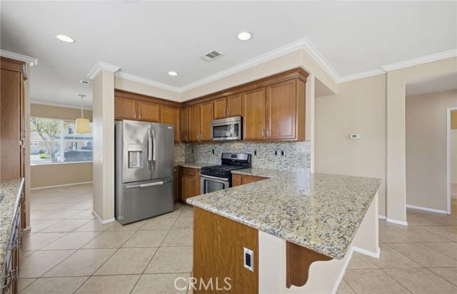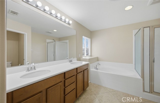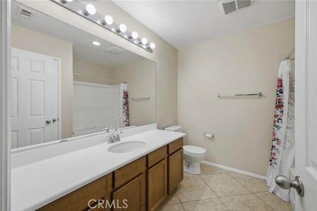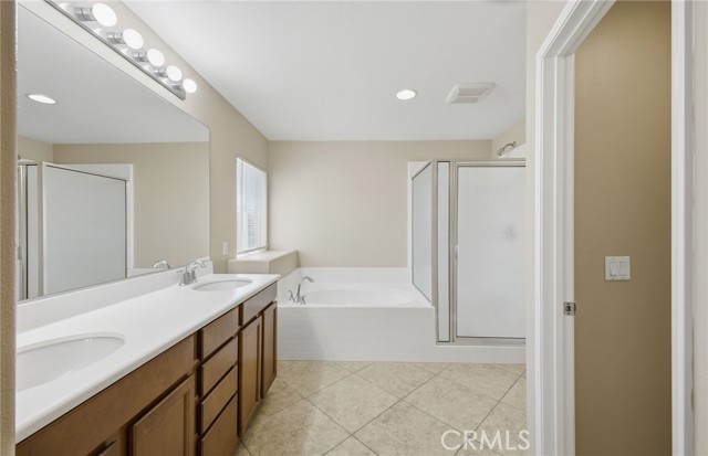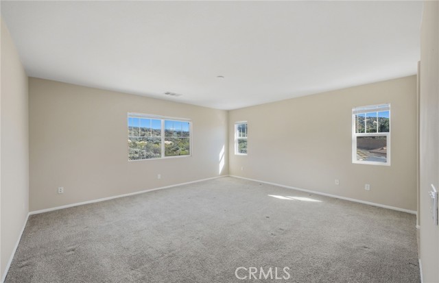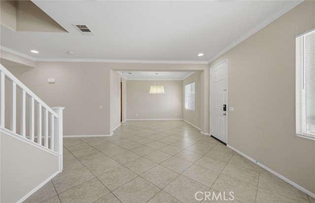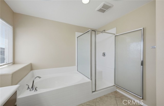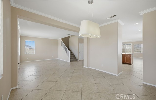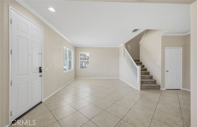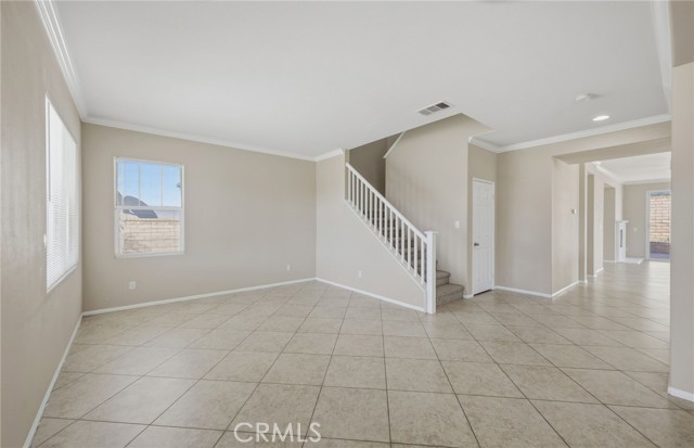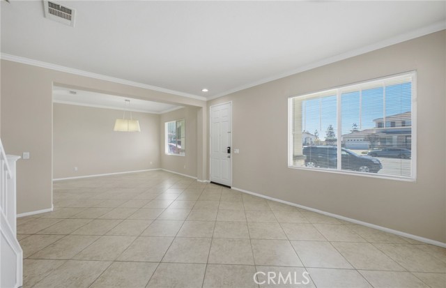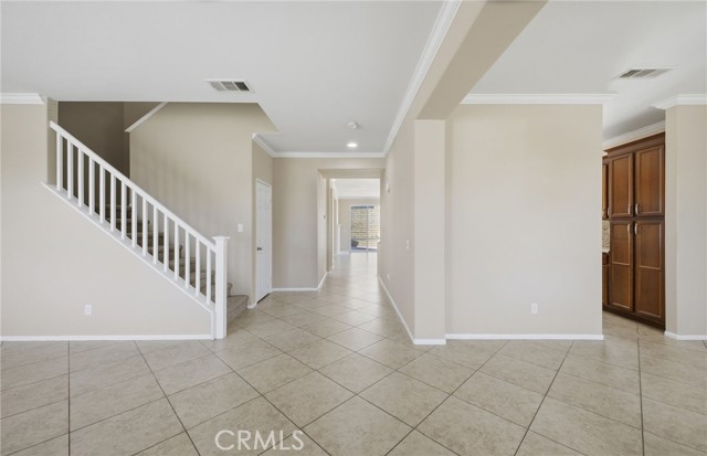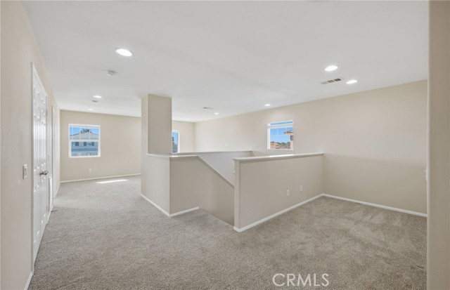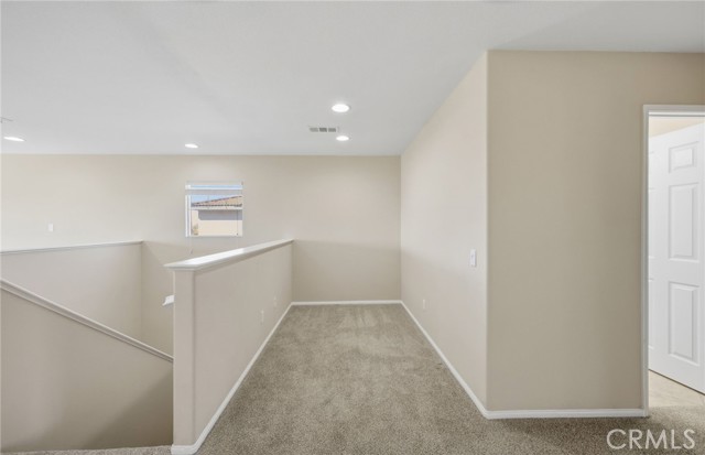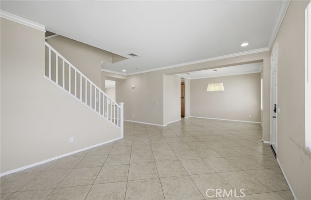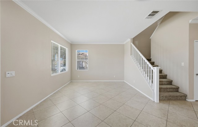 Welcome to 27212 Golden Field Court, a vacant, clean, and move-in ready home tucked away on a quiet cul-de-sac in Moreno Valley. This well-maintained residence offers a functional, light-filled layout ideal for both homeowners and investors. This spacious home features a highly sought-after downstairs bedroom and full bath, perfect for multi-generational living or guests or future income. Second floor also includes a versatile bonus space (loft) with potential for a 5th bedroom or home office or gym and landing area. The attached garage features a dividing wall, allowing two spaces to be easily transformed into a private entertainment or gaming room or even an ADU conversion (buyer to verify), providing future income possibilities. Stay comfortable with dual A/C units designed to lower utility costs year-round. The low-maintenance backyard provides space to relax, entertain, or customize. This home is located within walking distance of Rock Ridge Park and conveniently located near schools, shopping centers (like Stoneridge Towne Center, Walmart etc), dining, and Kaiser Permanente Moreno Valley Medical Center, with easy access to the 60 and 215 freeways and close proximity to Lake Perris. A great opportunity to own a turn-key home with upside potential in a desirable Moreno Valley location.