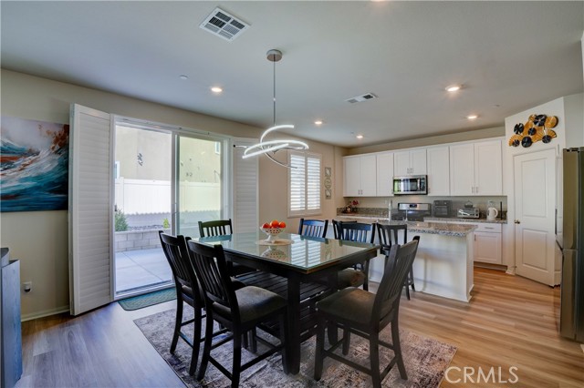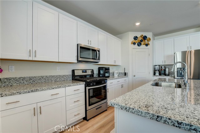 Buy now with confidence, welcome to 24856 Tiger Ave, this brand-new, move-in-ready Meritage Home offering modern comfort and a thoughtfully designed open-concept layout. Built in 2021 and lightly lived in for approximately five months, this home feels nearly new. This stunning residence, approximately 1,925 sq. ft., features 4 bedrooms, 3 bathrooms, a 2-car garage, and a convenient indoor laundry room. A main-floor bedroom and full bathroom provide the perfect space for guests, extended family, or a private home office. The spacious floor plan seamlessly connects the family room, dining area, and kitchen—ideal for both everyday living and entertaining. The kitchen showcases a large granite island with bar seating, white cabinetry with modern hardware, stainless steel appliances, and a generous walk-in pantry. The spacious primary suite offers dual sinks, a large walk-in closet, and plenty of room to unwind. Additional highlights include approximately $20,000 in upgraded flooring installed in January 2025, upgraded window shutters, and a fully landscaped, low-maintenance backyard designed for easy enjoyment. Meritage Homes is nationally recognized for building energy-efficient homes, featuring spray foam insulation. This home also includes a remaining structural warranty and leased solar, helping reduce utility costs year-round. Ideally situated within walking distance to a park, less than a mile from local schools, & close to shopping centers and restaurants. This home offers exceptional commuter convenience with quick & easy access to major freeways. Just minutes from the 60 and 215 Freeways, residents enjoy effortless connections to Riverside, San Bernardino, and surrounding Inland Empire cities. Nearby access to the 91 and 10 Freeways also makes travel to Orange County, Los Angeles, and beyond both simple and efficient. Whether commuting to work or heading out for shopping, dining, & entertainment, this prime location provides excellent accessibility while maintaining the comfort of a peaceful residential neighborhood. Treat your family to the best. Call today! (Click the 360 link for a full video tour)
