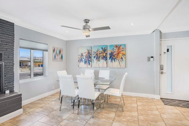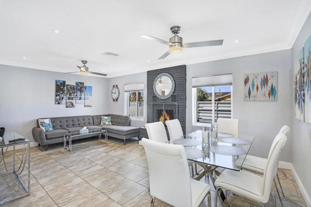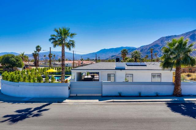 Welcome to desert living in this exquisitely reimagined Mid‑Century modern residence, where timeless Palm Springs architecture meets sophisticated contemporary design. Ideally situated just moments from the vibrant dining, boutique shopping, and world‑class entertainment of downtown, this three-bedroom, two-bath retreat offers 1,309 square feet of beautifully curated interiors on an expansive 9,583‑square‑foot lot. Crafted for both serene relaxation and effortless entertaining, the home's open-concept layout flows seamlessly into a private outdoor oasis. A resort-caliber saltwater pool and spa--custom designed and built by Tessera--anchor the breathtaking backyard, framed by sweeping mountain views. Evenings are elevated around the impressive oversized fire feature, while the outdoor kitchen, with abundant counter space and seating for more than 20 guests, creates the perfect setting for unforgettable gatherings under the desert sky. Every detail has been thoughtfully refined, including a newer roof, energy-efficient solar system, tankless water heater, and premium appliances. Offered turnkey fully furnished, this residence reflects a harmonious blend of comfort and sophistication, ready to enjoy from the moment you arrive. Whether envisioned as a lucrative short-term rental opportunity or an exceptional personal getaway, this home captures the very essence of the Palm Springs lifestyle--luxurious, effortless, and endlessly inviting.