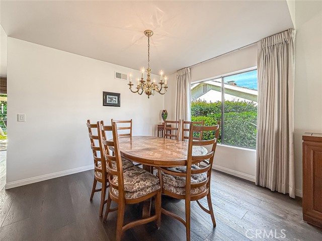 First time on the market in over 45 years! This charming single story 3-bedroom, 2-bath Village Homes residence offers exceptional curb appeal and a prime location within one of the area’s most desirable communities. A welcoming double-door entry opens to a sun-drenched, step-down living room featuring vaulted ceilings, rich wood flooring, and a stunning dual-sided brick fireplace—perfect for relaxed evenings or entertaining guests. The adjacent dining room is bathed in natural light from a large picture window and shares the fireplace, creating a seamless flow for gatherings. The family room, also with vaulted ceilings, opens to the kitchen complete with a breakfast bar, gas range, refrigerator, and a picture window overlooking the lush backyard—ideal for everyday living and casual entertaining. Down the hall, you’ll find two secondary bedrooms, a hall bath, and a serene primary bedroom with a sliding glass door to the private backyard-and an ensuite bath featuring luxuriously heated floors. Step outside to a tranquil backyard surrounded by mature trees and foliage—perfect for outdoor dining, gardening, or simply enjoying Southern California’s year-round sunshine. Residents of Village Homes enjoy access to a community pool, tennis court, and clubhouse, enhancing the relaxed, resort-style lifestyle. This is a rare opportunity to own a lovingly maintained home in a sought-after community—welcome home.