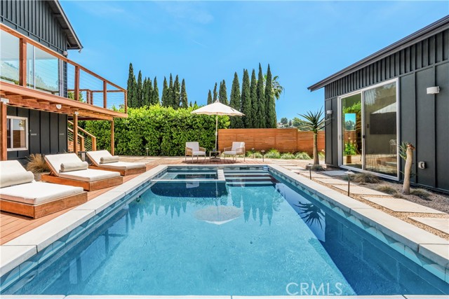 SFR + ADU + POOL + VIEWS! Welcome to 2240 Ewing St, a stunning modern retreat that combines high-end design, smart technology, and resort-style living in one beautifully appointed property. Featuring vaulted ceilings, skylights, custom finishes, and white oak flooring throughout, the home is equipped with keyless Yale locks, a Vivint security system, and an Nest thermostat for ultimate comfort and peace of mind. The chef’s kitchen boasts top-of-the-line Thermador appliances, a wine fridge, terrazzo countertops, a stainless steel farmhouse sink, and a spacious island with seating. The luxurious primary suite offers downtown LA skyline views, pool access, a walk-in closet, and a spa-like bath with dual rain showers and WinZo sinks. Additional highlights include a Jack and Jill bathroom for guest rooms, a detached ADU with full kitchen and in-unit laundry, a versatile office/pool room, and a loft ideal for a playroom, studio, or meditation space. Outdoor living shines with a pool, spa, Brazilian redwood decks, and multiple lounge and dining areas—all behind a gated driveway with parking for up to four cars. Located in the heart of trendy Silver Lake, you're just minutes from some of LA’s best restaurants, boutique shopping, weekly farmers markets, and the vibrant energy of Sunset Junction. You just have to see it for yourself!