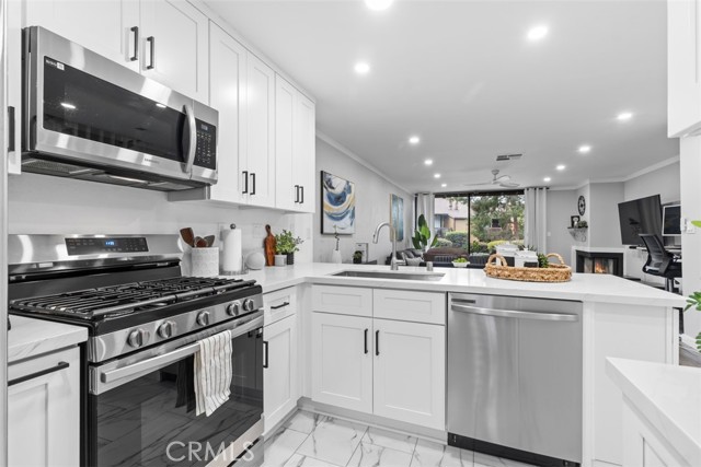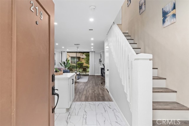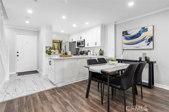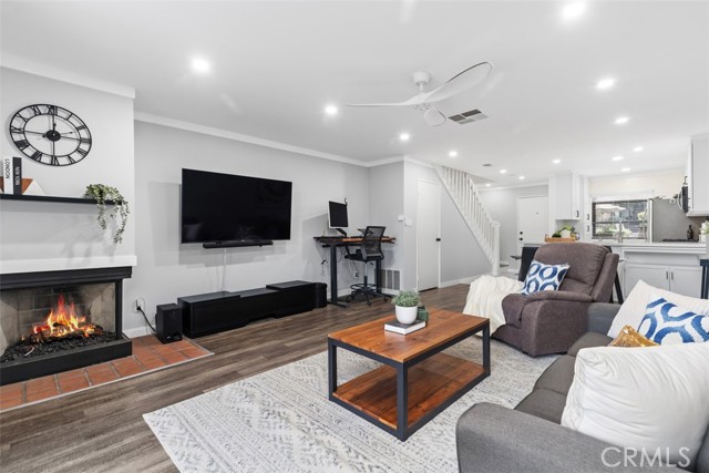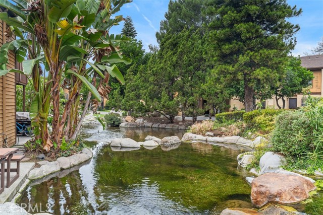 Turn-key and impeccably remodeled, this sophisticated two-bedroom, two-bath residence is ideally positioned within the highly coveted Lake Ridge Community, offering 1,066 square feet of thoughtfully designed, open-concept living space. This home is in a prime location, the property sits directly across from the pool and spa, one of four on the property, and enjoys a rare setting surrounded by tranquil water features and scenic views. The stunning kitchen features white shaker cabinetry, quartz countertops, a large deep sink, upgraded plumbing and hardware, new appliances, and recessed lighting, opening effortlessly to the living room with fireplace and breathtaking views of streams, fountains, and lush grounds. Step outside to the rear patio and enjoy the serene sound of flowing water, creating a true indoor-outdoor retreat. Luxury plank flooring, fresh designer paint, updated baseboards, and elegant crown molding enhance the home throughout. Both bedrooms are generously sized, highlighted by a serene primary suite offering a private balcony with one of the best views in the community of expansive ponds, flowing streams, fountains, and local mountains, along with a walk-in closet, ceiling fan, and a beautifully updated ensuite with new vanity and hardware. The guest bedroom features a panelized glass door closet and ceiling fan. Bathrooms have been tastefully refreshed with reglazed tub and shower, new vanities, skylight, and modern finishes. Panelized glass doors, abundant natural light, and access to a community sauna further elevate the living experience. Ideally located within walking distance to Rio Hondo College and near the San Gabriel River Trails and Whittier Narrows Recreation Area, as well as schools, shopping, and easy access to the 605 freeway, Lake Ridge is renowned for its resort-style grounds, flowing rivers, fountains, ponds, and multiple pools and spas—offering an exceptional lifestyle in a truly picturesque setting.