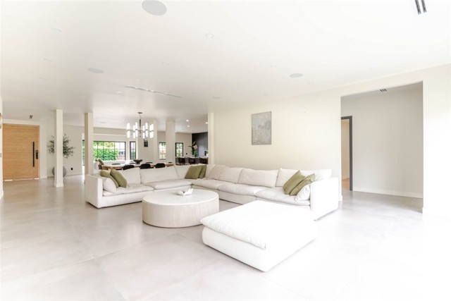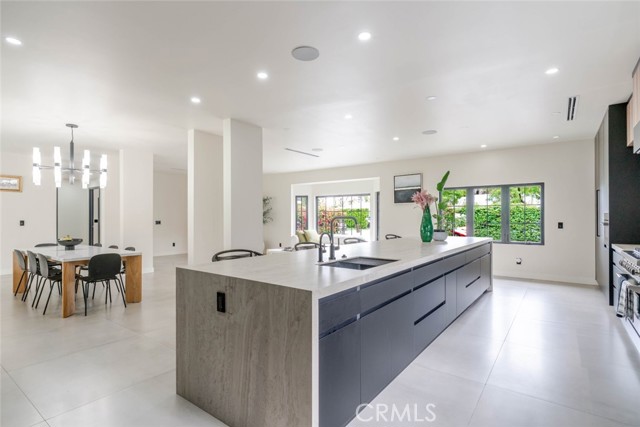 Welcome to 6849 Firmament Avenue A stunning modern residence in the heart of Van Nuys offering 4 bedrooms, 5 bathrooms, and approximately 3,885 sq ft of beautifully curated living space on an expansive 20,189 sq ft lot. Designed with style and functionality in mind, this home features soaring ceilings, an airy open-concept layout, and recessed lighting throughout for a clean, contemporary feel. The chef's kitchen is a true showpiece, featuring sleek custom cabinetry, a dramatic oversized island with seating, premium finishes, and seamless flow into the dining and living areas, perfect for entertaining. The spacious living room opens to the backyard through large sliding glass doors, creating effortless indoor-outdoor living and showcasing the home's incredible lot size and lush outdoor potential. Retreat to the primary suite complete with a walk-in closet and spa-inspired bath, highlighted by striking designer stone walls and a modern double vanity. Additional bedrooms offer comfort and privacy, each complemented by stylish bathrooms and high-end finishes. A dedicated laundry room, generous storage, and thoughtfully selected materials throughout complete this exceptional property. With its bold architectural style, premium upgrades, and oversized lot, this is a rare opportunity to own a truly special home in one of the Valley's most desirable neighborhoods.
