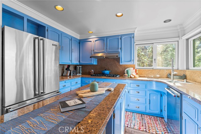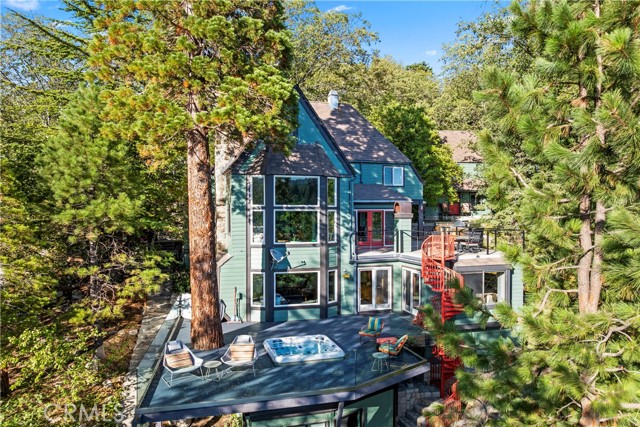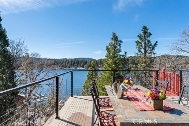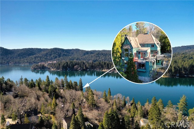 Upon entering this magnificent Lakefront home that blends a modern style with vintage appeal, you’ll look out to glistening North Bay views from massive windows. Originally built in 1922 by James Gamble of Procter & Gamble, one of Lake Arrowhead’s visionaries, this North Shore estate spans a gently terraced half-acre with full-day sun and spectacular sunsets. Expanded, updated, and lovingly maintained over decades, this home marries timeless elegance with contemporary comforts. The floor plan offers multiple indoor/outdoor areas, 5 bed-rooms including a spa-like primary suite and a separate guest cottage suite, four baths, a two-car garage and a single slip dock with a double-sized granite pier. The heart of the home is the spectacular two-story great room, where exposed beams and a floor-to-ceiling granite wood-burning fireplace create an ambiance of warmth yet grandeur. A long window seat invites you to lounge with a book, sip a glass of wine, or simply take in the ever-changing hues of the sparkling lake below. The bright kitchen is outfitted with top-of-the-line Viking appliances. The double french doored dining area opens onto a sprawling entertaining deck, commercial-grade Viking grill, refrigerator, and bar—perfect for al fresco summer gatherings. Also on the main level is a versatile bedroom and bath which could be an office, den or study. It looks out to a soothing recirculating stream water feature. Below a spacious family room, with warm wood paneling and cabinetry, window seating, a built-in bar, big-screen TV, french doors open to another expansive Trex deck built around a majestic 100-year-old incense cedar. Here you’ll find a new inlaid hot tub/spa, along with space for sunbathing or enjoying a competitive game of ping-pong. A frameless glass railing ensures unobstructed views. Additional updates include dual-pane Andersen windows, a DaVinci composite slate roof, hardwood flooring, a whole-house generator, new HVAC and SONOS speaker systems, a beautiful 1k bottle wine cellar, and a private gym. Granite pathways lead from a mature rose garden and fruit trees to the private pier and Brand New SS dock below fully equipped with Bbq, refrigerator, seating. This rare and iconic North Shore original offers a unique opportunity to own a piece of Lake Arrowhead’s history. With decades of thoughtful care and upgrades that enhance its authentic character, this home is listed at $3,499,000. Furnishings are negotiable per seller’s inventory.
