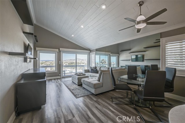 Panoramic views of the ocean, sunsets, Dana Point Harbor, Dana Point Headlands, Catalina Island, city lights, and hills! This upper 2 bedroom condominium in a 3-unit building is highly upgraded and in turnkey condition with beautiful furniture, which is included in the lease. The spacious living room offers a vaulted wood ceiling, a wall mounted TV, a large comfortable sectional sofa, and a mirrored wall that reflects the spectacular views. Additional features include a convenient inside laundry closet with a stacked washer & dryer, stainless steel appliances, quartz counters in the kitchen and bathroom, recessed lighting, crown molding, plantation shutters, ceiling fans, luxury vinyl plank flooring throughout, and vaulted wood ceilings in the living and dining rooms. Enjoy relaxing on the living room deck while soaking in the gorgeous views. The primary bedroom has a wall mounted TV, a king-sized bed, nightstands, a ceiling fan and mirrored wardrobe closet. The second bedroom/office has a desk and a daybed. The upgraded and modern bathroom offers a large vanity with 2 sinks, quartz counter, and a bathtub and shower. Great location near swimming and surfing beaches and the San Clemente Beach Trail. 1-car garage with an automatic opener, 1 covered carport space and 1 additional tandem space. Convenient alley access. Common area patio with a BBQ and firepit. Enjoy the San Clemente beach lifestyle with its fantastic restaurants, shopping, pier and renowned beaches. The landlord will consider one small pet with an increased security deposit.