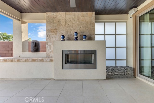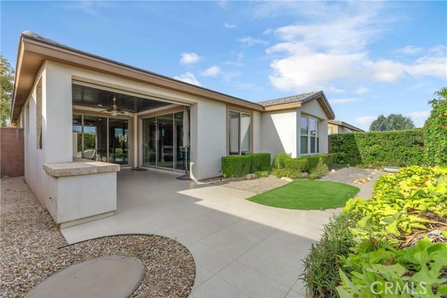 Located behind the gates in a quiet cul-de-sac within Trilogy at The Polo Club, this former FULLY FURNISHED MODEL HOME showcases thoughtful design, quality finishes, and a layout that balances open entertaining spaces with private retreats. The exterior features clean desert landscaping, stone accents, and a paver driveway that create strong curb appeal, while the covered entry opens to an interior highlighted by textured wall treatments, recessed LED lighting, and custom millwork details. Just off the entry, a dedicated office includes built in cabinetry, display shelving, and a window seat framed by twin windows, offering a comfortable and functional work from home environment. The main living area unfolds in an open concept design centered around a spacious kitchen with rich cabinetry, granite slab surfaces, a large island with seating, stainless steel appliances including double ovens, a gas cooktop with vent hood, and a glass tile backsplash that adds dimension. The kitchen flows into the dining area and great room, where expansive sliding glass doors connect to the covered patio, allowing natural light to fill the space and creating an easy indoor outdoor transition for gatherings. The great room features built in niches, and the dining area is positioned for direct patio access, supporting a natural flow for hosting. The primary suite is privately situated and designed as a relaxing retreat, featuring a curved wall of windows, custom paint tones, and an ensuite bath with dual vanities, stone counters, and a walk in shower enclosed in glass with contemporary tile work. A well appointed secondary bedroom offers privacy and custom accents, complemented by a guest bath with modern finishes. The laundry room provides additional cabinetry and counter space and functions as a versatile smart space for organization or hobbies. Outdoors, the covered patio is enhanced by a wood plank ceiling, ceiling fan, and a built in fireplace with stone surround and adjacent serving counter, creating a comfortable setting for entertaining throughout the year. The backyard is designed with gatherings in mind, offering artificial turf, mature hedging for privacy, and defined seating areas that make it easy to host friends and family. As a former model, the home reflects careful attention to detail, upgraded materials, and a cohesive design palette throughout.