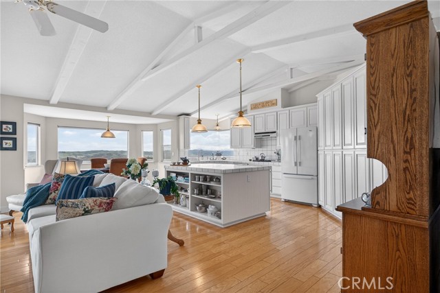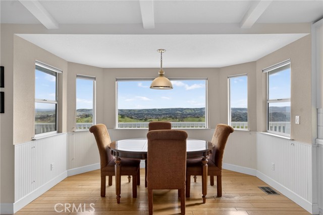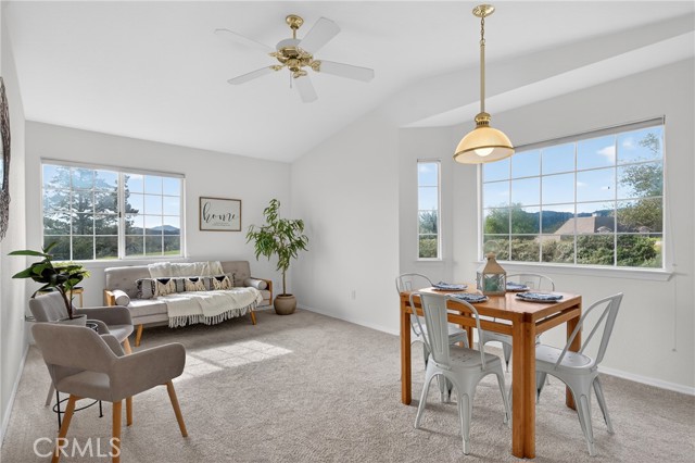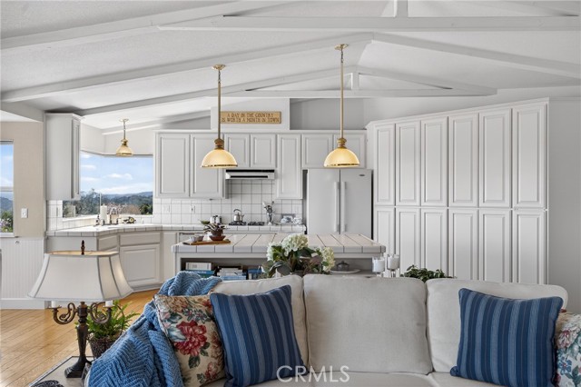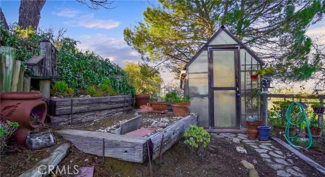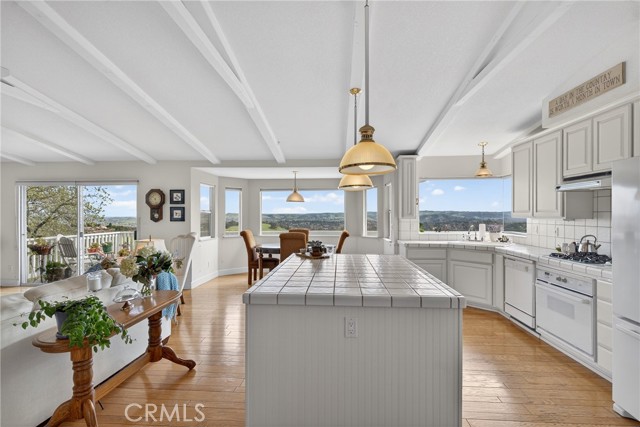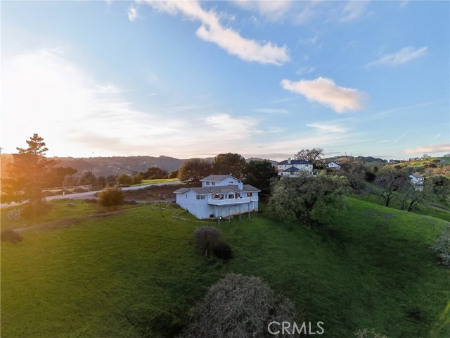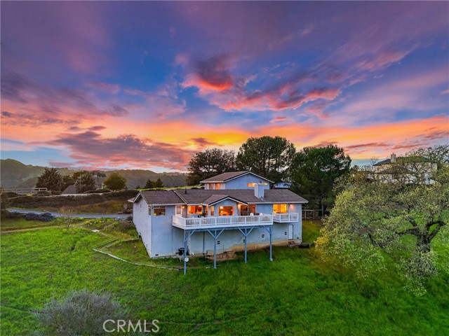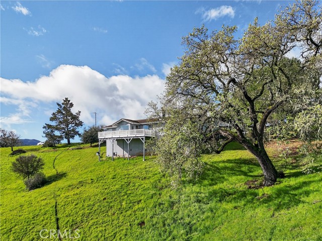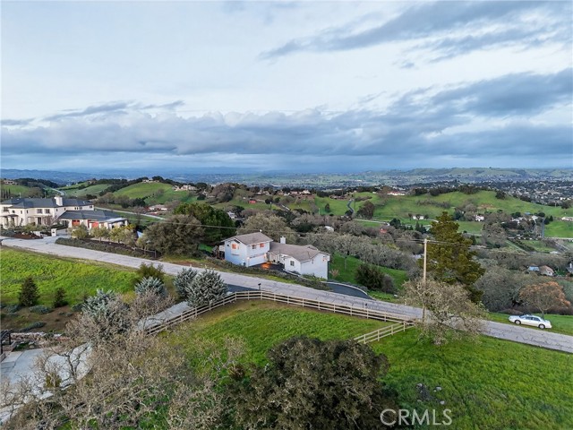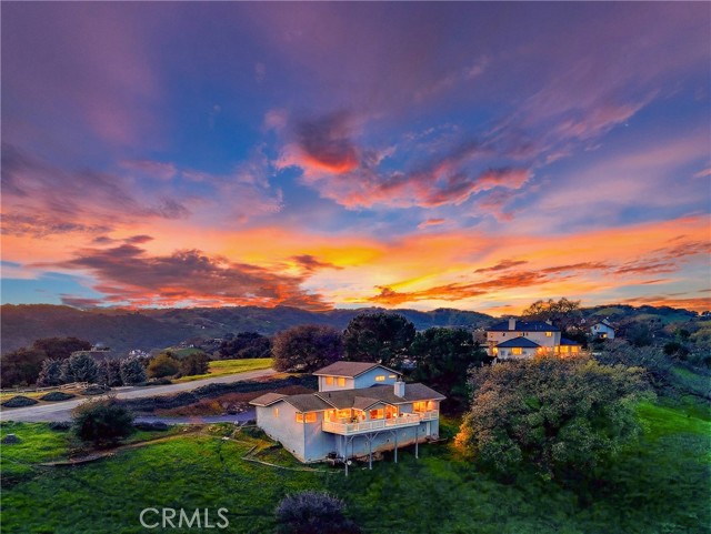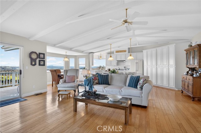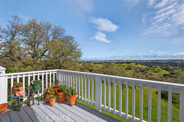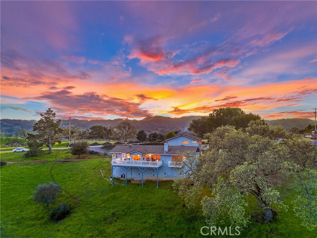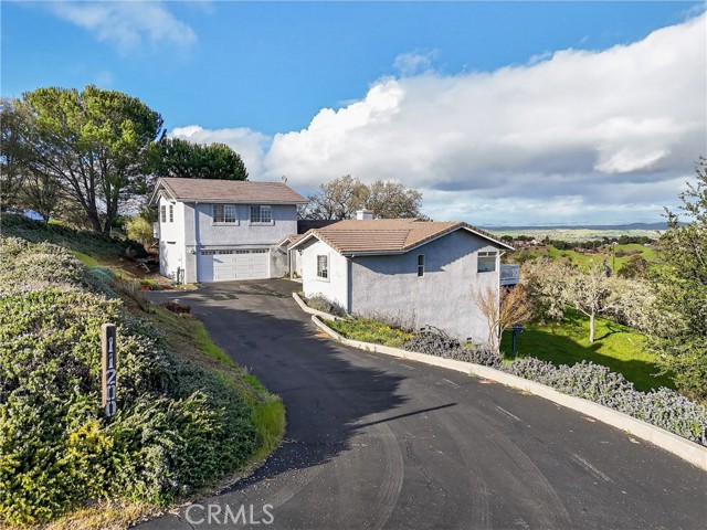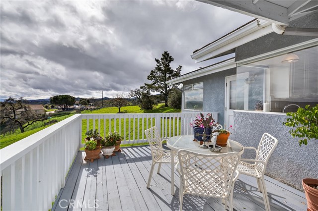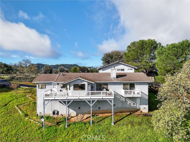 Sweeping panoramic hill and valley views define 11200 Santa Ana Road, a one-owner property positioned to capture the scenery from nearly every angle. Located in the desirable Long Valley Ranches neighborhood, this Central Coast home offers a rare blend of privacy, views, and flexible living spaces in a peaceful hillside setting. The main residence features an open-concept layout with vaulted ceilings and exposed beams, creating a light and airy feel throughout the living and dining areas. Sliding glass doors from both the living room and the primary suite open to upper-level decks, seamlessly blending indoor and outdoor living.The primary suite is privately separated from the additional bedrooms, offering a true retreat. Two secondary bedrooms are located in the opposite wing, one currently used as an office and featuring a glass door that opens directly to the back deck. The kitchen is positioned to enjoy the scenery and includes tile countertops, abundant cabinetry, a center island, and hill views from the kitchen window. The dining area is surrounded by windows, allowing natural light and rolling hills to frame everyday living. A cozy fireplace anchors the main living space, while the primary suite offers its own fireplace and deck access with tranquil views. The primary bathroom includes dual sinks, tile countertops and flooring, a soaking tub beneath tall windows, a walk-in shower with frosted glass enclosure, and built-in storage. A hall bathroom with high ceilings, tile finishes, and natural light connects to the second bedroom. A spacious laundry room offers extensive cabinetry and a generous folding counter. Recent upgrades include the air conditioning system and decking. Adding exceptional flexibility is the fully permitted guest house located above the garage, built in 1995. This private space features an open kitchen flowing into the living area, a center island, hill views from the kitchen window, a spacious bedroom with scenic views, a bathroom with tile flooring and a walk-in shower, new carpet throughout, and its own private deck. The stairway is pre-wired for a chair lift, offering future accessibility. Outdoor living is a highlight, with multiple upper-level view decks, peaceful walking paths, and a charming garden area complete with a greenhouse. With its elevated setting, captivating views, and thoughtfully designed living spaces, 11200 Santa Ana Road offers a peaceful Central Coast lifestyle that feels both private and connected.