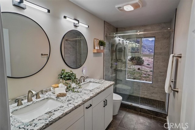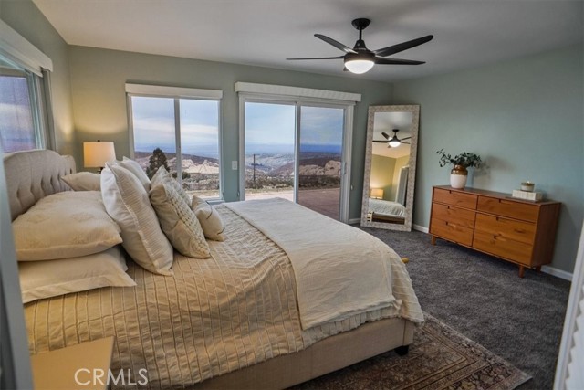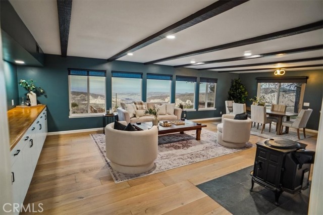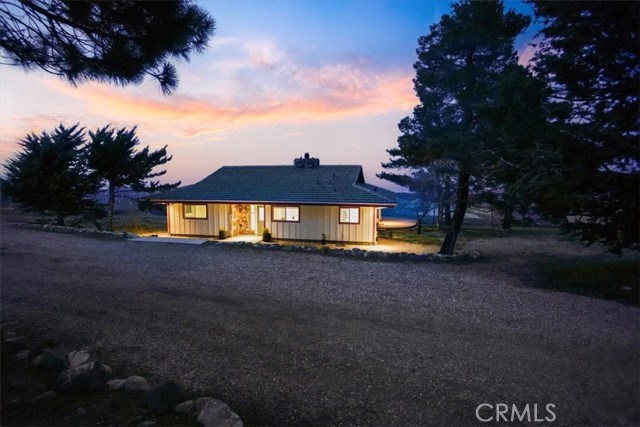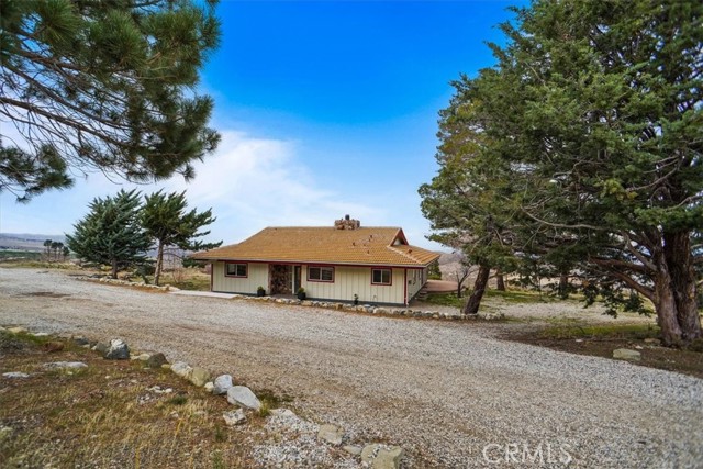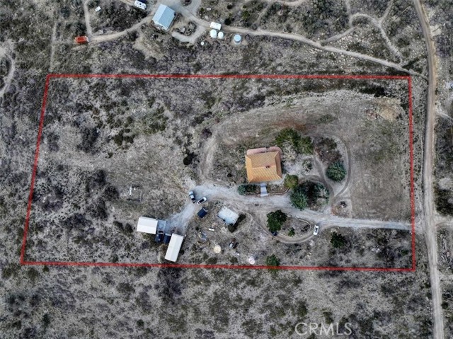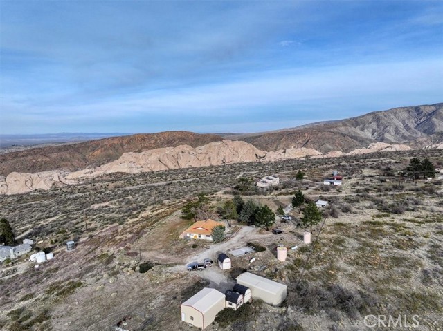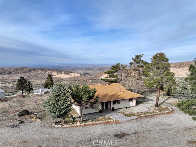 Set against the wide-open skies of Juniper Hills, this home is a quietly striking retreat where thoughtful design meets the freedom of nearly five acres of land. The setting alone is cinematic—panoramic views unfold in every direction, offering a daily reminder of why space, light, and landscape matter. Renovated in 2022, the home feels both grounded and refreshed. Beamed ceilings and built-ins lend warmth and character, while the living room’s wood stove anchors the space as a natural gathering point—perfect for cool desert evenings spent watching the light change across the hills from the broad-view windows. The kitchen is modern yet approachable, finished in a two-toned palette with gorgeous Cambria quartz countertops. Sleek appliances include a 36" Wolf induction cooktop with hood, stainless refrigerator and a convection oven. Ample pantry storage is thoughtfully integrated, keeping the room visually calm while ensuring functionality. The bathroom renovation mirrors this understated sophistication, featuring Cambria quartz counters, a dual vanity, and a walk-in shower designed with both style and practicality in mind. The layout includes two bedrooms with an additional room providing a home office or third bedroom option. Energy-efficient evaporative cooling keeps the home comfortable while staying true to its environment. Beyond the main residence, the property expands into a lifestyle. Two exterior office structures with loft storage offer inspiring work-from-home or creative studio options. RV hookups and covered storage offers plenty of room for vehicles. Abundant open land lends itself naturally to horses and rural living. Adjacent to Devil's Punchbowl, this gated community offers access to extensive trails and proximity to mountain outdoor activities. This is a home that invites you to live a little more intentionally, where mornings begin with expansive views, days unfold with room to breathe, and evenings settle in under a vast, star-filled sky.