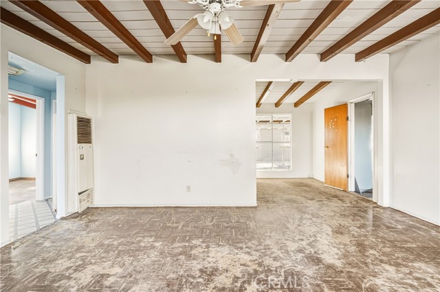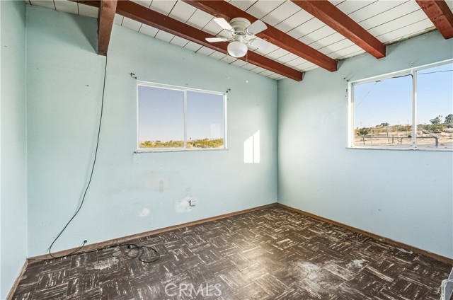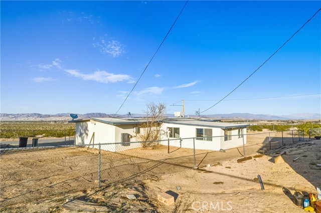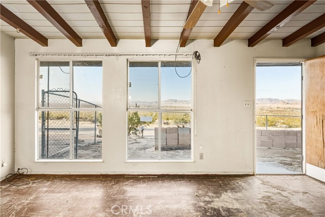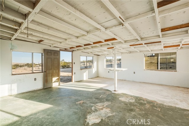 Welcome to 73079 Siesta Ave! This two bedroom, one bath fixer is awaiting your personal touch to be something very beautiful and special. Tons of interior space to work with. The main home may even be split into a duplex if a bathroom and kitchen were added to the western part of the home as there are two front doors already. That is how much space there is to play with. There is also a very large workshop with water and power and bathroom on the back of the parcel. Priced to sell this home boasts tremendous views and desert serenity and is close to all Twentynnine Palms and the high desert has to offer. The midcentury features like the exposed beam ceilings and symmetrically placed windows are begging to be utilized in your design plans. There is leased solar on the home as well. The back of the home appears to be an enclosed porch with a door to the backyard. The enclosure is just bonus space to be used for whatever entertains your needs. The home is located only 7 miles away from the entrance to Joshua Tree National Park and also is 7 miles to the 29 Palms Marine base. Twentynine Palms is rapidly growing in popularity and features a new city center called Freedom Plaza which hosts city events, a weekly farmers market and a cultural museum. Parks and schools are nearby as well as the cities downtown and it's eclectic restaurants and shops. Come make this your home or possibly rental income property.