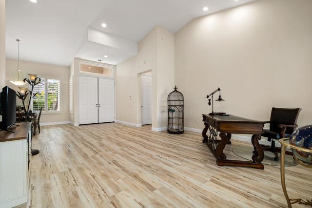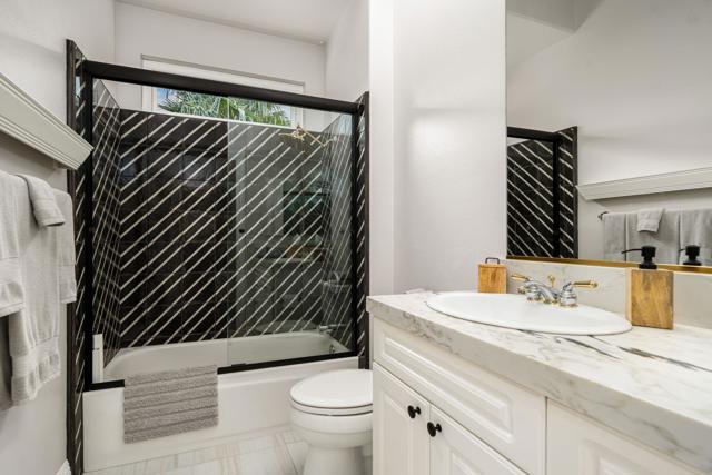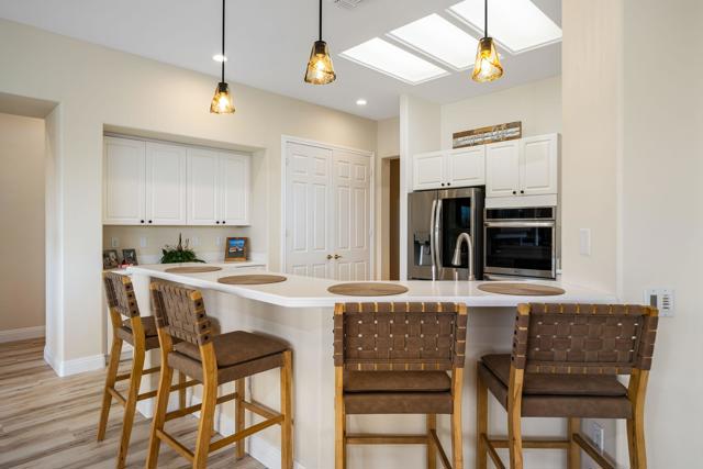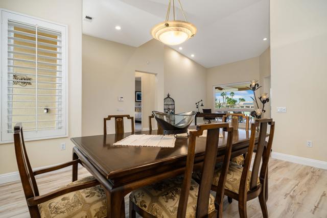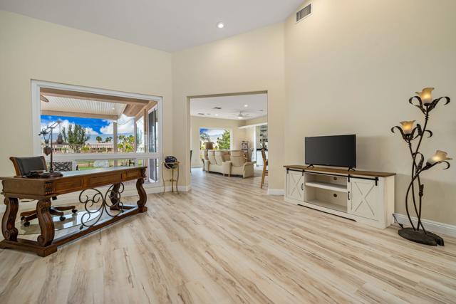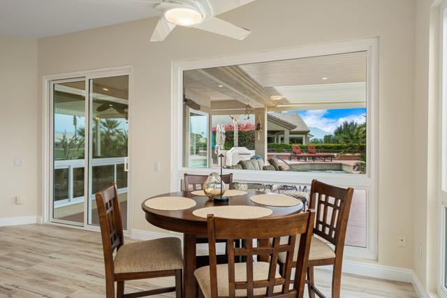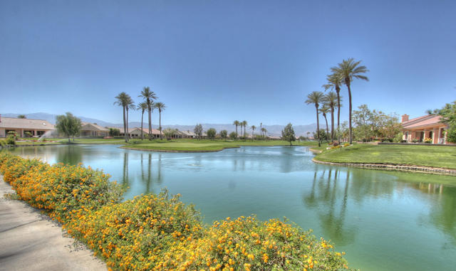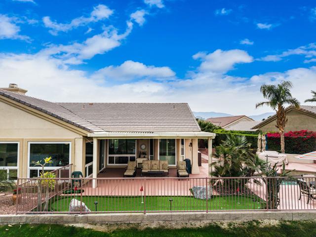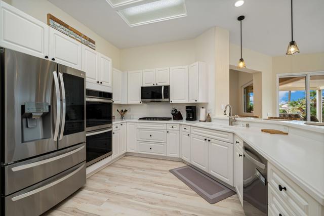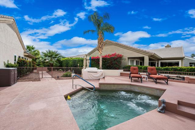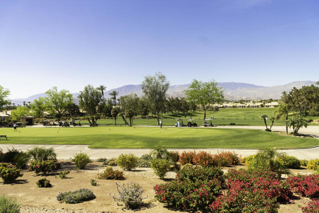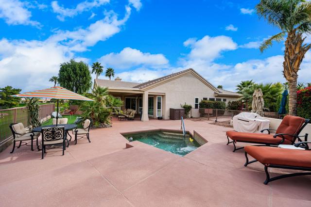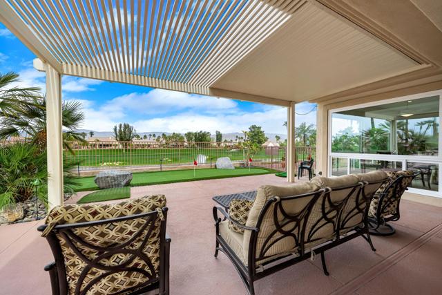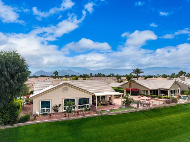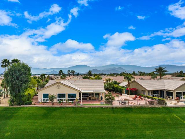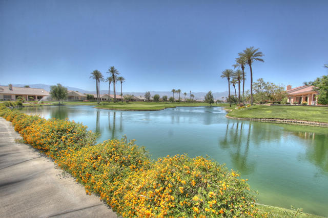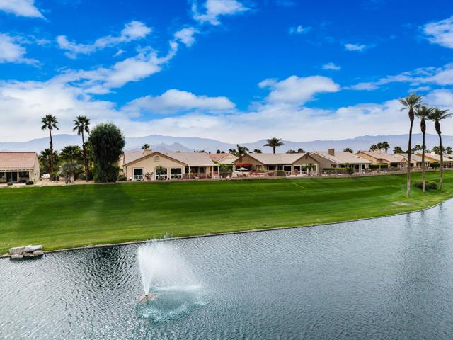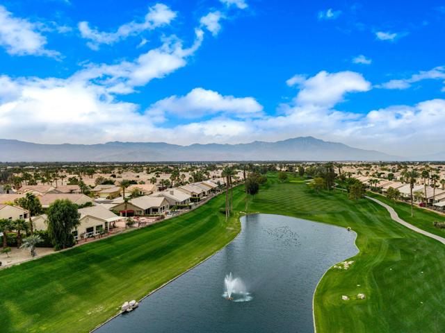 Imagine waking each morning to sunlit fairways, shimmering water, and mountain silhouettes painted across the desert sky. This EXPANDED SAN REMO set on a RARE ELEVATED FLAG LOT, offers one of those 'this is why we moved here' views - sweeping golf course, lake, fountain and panoramic mountain vistas enjoyed from the privacy of its cul-de-sac setting.Designed for the season of life you've earned, this thoughtfully expanded single-level home blends comfort, elegance and effortless livability. Whether hosting friends after a morning round of golf or enjoying a quiet evening in, the open-concept design creates a warm and welcoming flow. The kitchen - with its custom breakfast bar, NEW STAINLESS APPLIANCES and generous counter space - invites conversation, laughter and lingering moments, while the fireplace adds a cozy glow on cool desert nights. BRAND NEW LOW-E WINDOWS frame the views like artwork, and NEW VINYL PLANK FLOORING brings both beauty and ease to everyday living.The primary suite is your personal retreat - a peaceful sanctuary with an EXPANDED PRIMARY BATH (bringing the interior livable space to 2,563 SF), oversized custom shower and TWO SPACIOUS WALK-IN CLOSETS. Guest rooms offer comfort and privacy, perfect for visiting family, grandkids or lifelong friends.Step outside and the lifestyle truly unfolds. Your OVERSIZED SPOOL, built-in FIREPIT, and backyard PUTTING GREEN creates a private resort experience - ideal for sunset gatherings, evening cocktails or simply soaking in the stillness of the desert under the stars. The ELEVATED LOT enhances both the sense of privacy and the breathtaking views, making every day feel like a getaway.With a long and private, PALM TREE LINED DRIVEWAY, two-car garage plus separate golf cart garage, TANKLESS WATER HEATER, custom lighting, and NEWER A/C SYSTEMS for both the home and garage, every detail supports easy, lock-and-leave convenience.And beyond your doorstep awaits the vibrant lifestyle of Sun City Palm Desert -championship golf, beautifully appointed clubhouses, fitness centers, pools and spas, pickleball and tennis courts, bocce, on-site dining, arts studios, social clubs, concerts, events and endless opportunities to connect, stay active and thrive.This isn't just a home - it's the lifestyle you've worked for, the view you've dreamed of, and the next chapter waiting to be written.