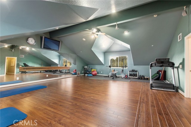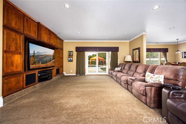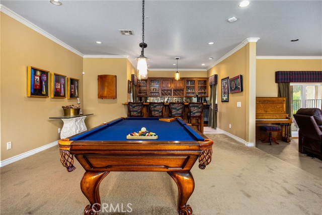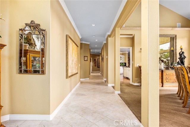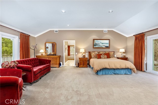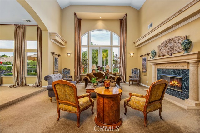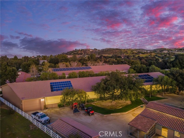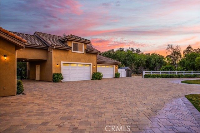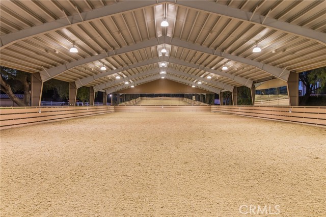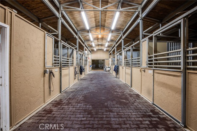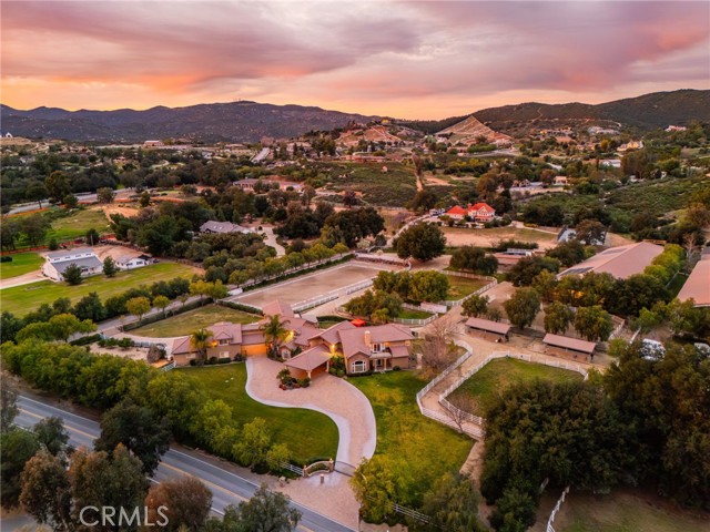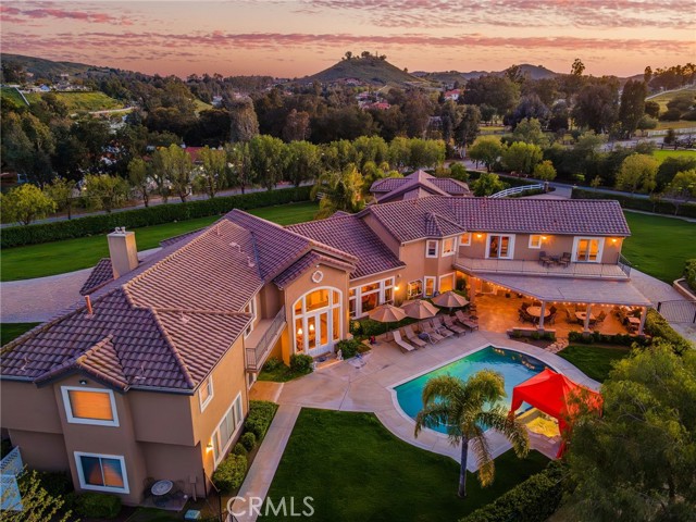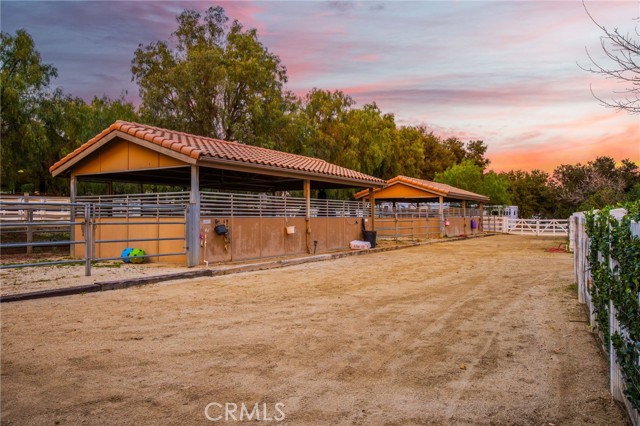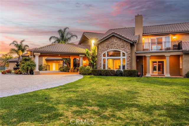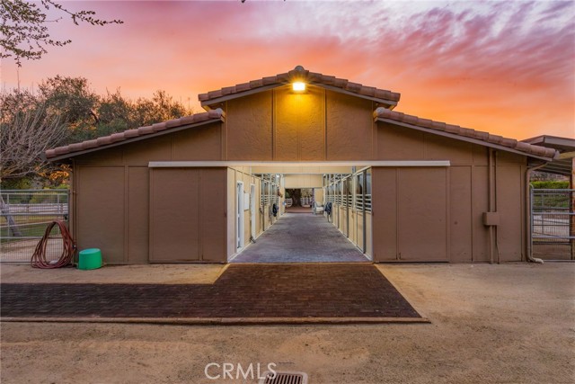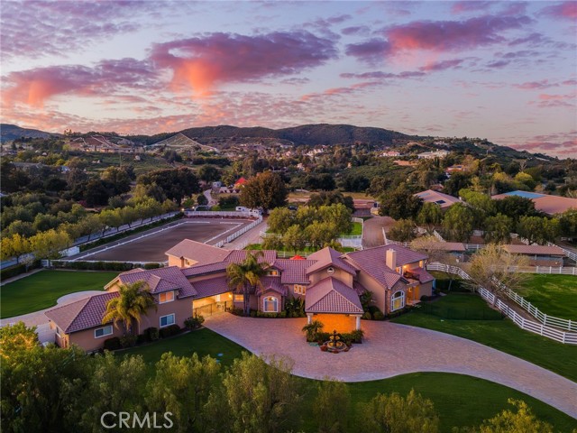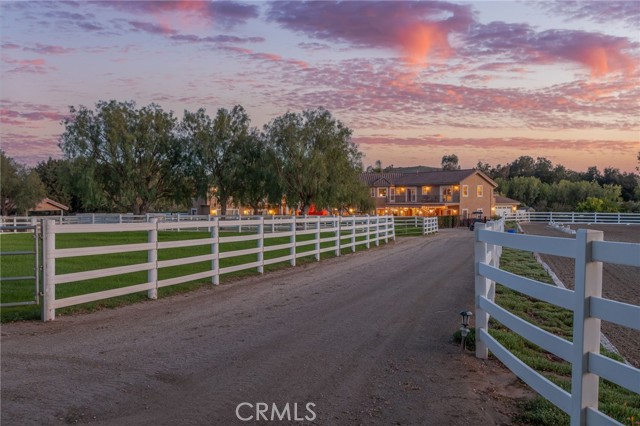 Welcome to one of La Cresta’s premier gated equestrian estates, offering over 5 acres of fully developed horse facilities paired with more than 8,500 square feet of luxury living. Designed for the serious equestrian, this exceptional property delivers a true training-level setup rarely found in Southern California. The professional-grade equestrian complex features an Olympic-size outdoor arena with premium footing and mirrors, an 8-stall breezeway barn with indoor/outdoor box stalls, a 4-stall Mare Motel, tack room, wash rack, feed room, barn restroom, and dedicated laundry area. A separate covered hay barn and 70-foot roll-up garage provide ideal storage for horse trailers, RVs, or equipment. Three grass pastures and two dirt turnouts offer ample space for turnout and conditioning. Beyond the equestrian facilities, the estate welcomes you with a grand motor court and covered loggia leading into an elegant residence with soaring ceilings, a formal living room with fireplace, and French doors opening to the outdoor entertaining areas. The gourmet kitchen features dual Cove dishwashers, a large walk-in pantry with additional refrigeration and wine cabinet, and flows seamlessly into the formal dining space. Just off the kitchen is a cozy den, along with a mud room and dedicated laundry room for everyday functionality. The main level also includes a private bedroom, two offices, and an expansive bonus room complete with full bar, fireplace, and cinematic entertainment setup. Upstairs, the mirrored gym with ballet barre offers a dedicated fitness space. In addition to the luxurious primary suite with wet bar, fireplace, dual balconies, heated stone floors, steam shower, soaking tub, dual vanities, and two walk-in closets, there are three additional bedrooms, each with its own private bathroom. The upper level also features abundant built-in cabinetry and extensive storage throughout the hallway and between the bedrooms and gym. The outdoor living area features a paver-stone driveway, solar-heated pool and spa, expansive patios, plus a garden and orchard with more than fifteen mature fruit trees. Additional highlights include a 4-car garage with EV charging, full-house gas generator, and private water well systems. All set in prestigious La Cresta, just minutes from shopping, dining, and Temecula Wine Country.