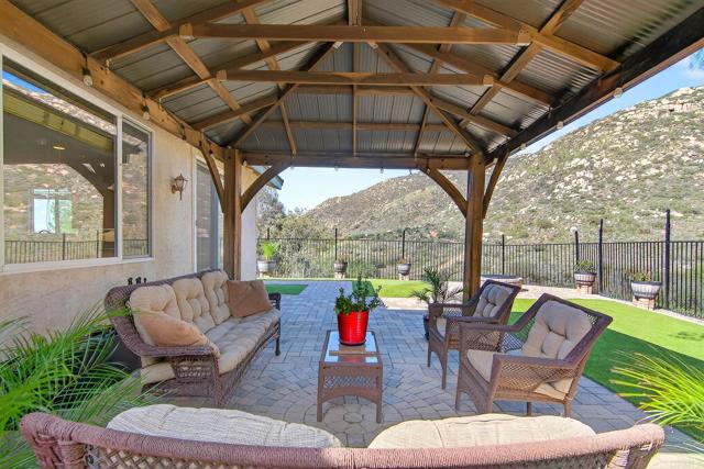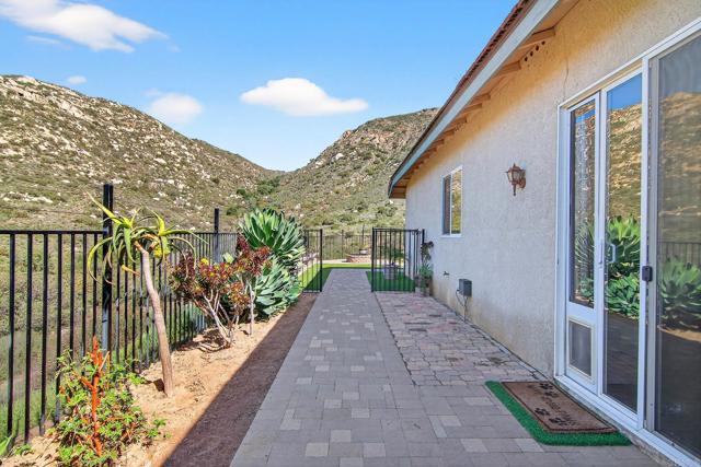 Privately positioned against scenic rolling hills at the end of a quiet cul-de-sac, the “Shalom” property lives up to its name — offering rare peace, privacy, and a truly secluded setting. A private driveway gently transitions toward the Cleveland National Forest, with no through traffic and no visible neighbors — just mountains, open space, and opportunity. Set on nearly an acre, this is a retreat defined by nature and tranquility. Rebuilt in 2004, this beautifully maintained single-story SDCE residence offers exceptional curb appeal with an extended driveway, custom paver entry, and mature landscaping. Designed for both comfort and entertaining, the open floor plan features formal living and dining rooms, along with a spacious family room anchored by a fireplace. The modern island kitchen with granite countertops flows seamlessly into the family room, creating a warm and inviting heart of the home. An expansive breakfast nook and formal dining area provide ideal spaces for both everyday living and hosting family and friends. The oversized primary suite is a true sanctuary, opening to breathtaking mountain views. The en-suite bath includes a whirlpool soaking tub, separate shower, dual sinks, large walk-in closet, and generous cabinetry — offering both luxury and function. Three additional bedrooms provide flexibility, including a convenient Jack-and-Jill bath between two of the rooms. Volume ceilings — 10 feet in the main living areas and 9 feet throughout the bedrooms and hallways — enhance the home’s bright, open feel. Wood, tile, and laminate flooring throughout offer durability and easy maintenance. Outdoor living is exceptional. Paver stone patios and concrete hardscape surround the home, complemented by a covered pergola, fire pit, split and ready-to-burn wood, artistic brickwork seating areas, and low-maintenance artificial turf. Over 100 drought-tolerant plants and beautiful succulents create a landscape that is both striking and sustainable. A fenced garden area with planting station adds to the property’s self-sustaining appeal. Energy efficiency and preparedness are thoughtfully integrated throughout the home, including a fully paid 23-panel solar system, high-performing A/C system, new portable GP6500 generator, new water heater, and new garage door — delivering long-term savings and added security. The oversized 3-car garage is finished and uniquely outfitted — featuring a fully equipped gym with weights, mats, mirrors, and a new infrared sauna on one side, with workbench and shop space on the other. Despite its uniquely secluded setting, the property remains conveniently close to SDCE amenities including golf, tennis, pickleball, two pools, and an equestrian center just minutes away. Located near the Cedar Creek Falls Trailhead within the Cleveland National Forest, offering exceptional access to hiking, nature trails, and seasonal waterfall views — blending refined living with outdoor adventure. The “Shalom” property is more than a home — it is a private hillside sanctuary offering comfort, sustainability, recreation, and peace of mind. This keeps it luxury, grounded, and emotionally compelling without sounding exaggerated.