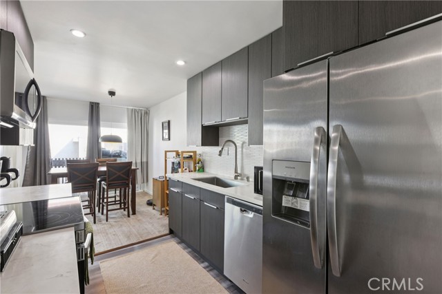 Perched at the top of The Pines in Culver City, this home might just be the quiet achiever you’ve been waiting for. Top floor? Check. Two bedrooms, two full baths? Absolutely. No shared walls—just one neighbor below? Yes, really. It’s the kind of place that feels almost too good to be true… but spoiler alert: it’s not. Inside, sunlight pours through generous windows, bouncing off sleek vinyl and carpeted floors and highlighting a fully renovated, modern aesthetic that’s equal parts polished and practical. The kitchen is dialed in with stainless steel appliances, quartz countertops, and contemporary cabinetry—ready for weeknight takeout plating or your next “I found this recipe on Instagram” moment. The living space flows effortlessly to a private balcony with treetop and courtyard views—morning coffee in the fresh air, evening wind-downs with a glass of something chilled, and just enough elevation to feel like your own little retreat above it all. The primary suite? Spacious enough for a king-sized bed (and then some), complete with a large walk-in closet and a remodeled bath featuring dual vanities and a sleek shower setup. The second bedroom and full bath offer flexibility—guest space, home office, Peloton studio, or all of the above. And then there’s the lifestyle factor. Living at The Pines means access to a sparkling pool, sauna, clubhouse, conference room, rec room, and on-site management—all within a gated community. Two tandem parking spaces in the garage make coming and going easy, and the central location near the 405 and 90 means the entire Westside is basically at your fingertips. Beach day? Dinner in Marina del Rey? Studios, shopping, restaurants? All within reach. Fully renovated. Top floor. No shared walls. Prime Culver City location plus one of the few units with added air conditioning. Opportunities like this tend to disappear quietly… but this one? It deserves a little noise. Don’t sleep on it.
