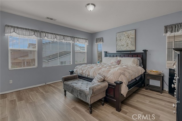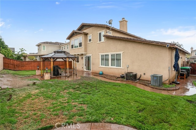 Welcome to 3150 Bellwood Street, a spacious 5-bedroom, 3-bath residence offering approximately 2,679 square feet of thoughtfully designed living space in the highly desirable McSweeny Farms community. This move-in ready home blends comfort, functionality, and energy efficiency. Equipped with solar panels and two Tesla backup batteries, you’ll enjoy reliable power and added peace of mind year-round. A 3-car tandem garage with electric vehicle charging capability adds modern convenience. On the first floor you will find an open-concept design that creates a seamless flow ideal for both everyday living and entertaining. Luxury vinyl plank flooring flows throughout, complementing the custom paint tones and abundant natural light that fills the home. The kitchen features granite countertops, plenty of cabinets, and opens directly to the generous family room. A formal living and dining area offers additional gathering space. On the first floor you will also find a main floor bedroom and full bath along with a private laundry area with built-in linen storage that leads to direct access to the garage. Upstairs, the expansive primary suite offers a relaxing retreat complete with a large ensuite bath featuring dual vanities, a soaking tub, separate walk-in shower, and an oversized walk-in closet. Additionally on the 2nd floor you have 3 bedrooms that are generously sized, an additional 2 full bathrooms with shower and tub combinations. The private backyard offers ample space with a gazebo patio cover for outdoor entertainment with gated side yard entrance. Living in McSweeny Farms means access to exceptional amenities within a beautifully designed 600-acre master-planned community. Residents enjoy a farmhouse-style community center, resort-inspired pool and spa, fitness center with sauna, outdoor BBQ areas, billiards room, parks, playgrounds, dog park, miles of hiking and jogging trails, and 24-hour neighborhood patrol. A community vegetable garden and pickleball courts are coming soon. Located just one mile from Diamond Valley Lake and minutes from Temecula Valley wineries. Seller is motivated!