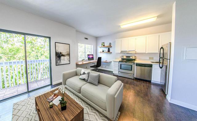 Light, bright North Park studio in the desirable Parkside community with a great price point. This efficient urban retreat features an open layout, crisp white walls, and a private balcony that extends the living space and captures tree-top neighborhood views. The tidy 9-foot kitchen offers closed cabinetry and a defined dining nook, while the clean white bath opens directly to the main room, keeping the space feeling open and airy. Thoughtful closet zones with an open, minimalist look make it easy to customize storage without sacrificing square footage. Ideally positioned near Balboa Park, major medical centers, downtown, and the beach freeway network, this condo supports an easy lock-and-go lifestyle or a low-maintenance first home. Enjoy walkable access to cafés, breweries, and neighborhood amenities while benefiting from a newer North Park building in a consistently high-demand rental and ownership area. Whether you are stepping into homeownership or adding a compact, low-vacancy rental to your portfolio, this modern studio delivers efficient living and long-term value in one of San Diego’s most vibrant urban neighborhoods.