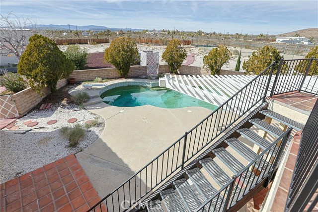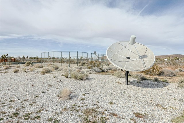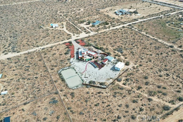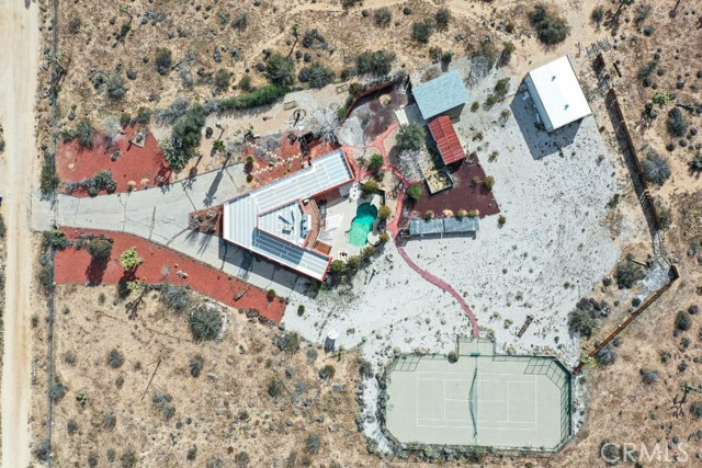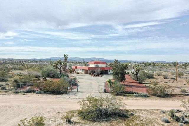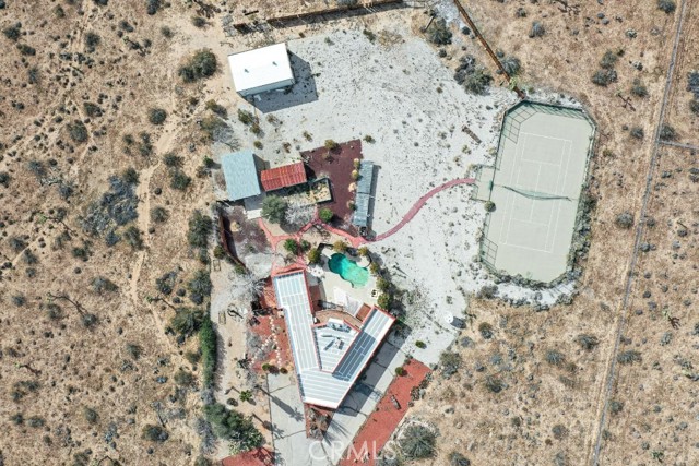 Welcome to an expansive Yucca Valley desert property offering space, privacy, and standout outdoor amenities on a fully fenced 10-acre setting. The immediate yard sits on five acres, with an additional five-acre parcel included (APN 0599-091-08)—together creating a fully chain-link fenced compound with wide-open desert views. Inside, the home features a bright, open layout with generous living areas, abundant natural light, and classic desert character. Outdoors is where this property truly shines: enjoy a beautiful patio with an in-ground solar-heated pool, plus a large propane-heated jacuzzi—ideal for entertaining, relaxing, and soaking in the desert sky. The property includes extensive utility and storage options, featuring a small detached garage and a nearby detached large two-stall garage/warehouse, providing excellent flexibility for equipment, hobbies, workshop needs, or additional storage. Recreational opportunities abound with a full competitive tennis court overlooking the open desert, plus a basketball hoop for even more fun—your own private desert sports retreat. Conveniently located with an easy drive to schools, commercial Yucca Valley, charming Joshua Tree Village, and Joshua Tree National Park, this is a rare acreage offering with amenities that are hard to find. Must see to appreciate.