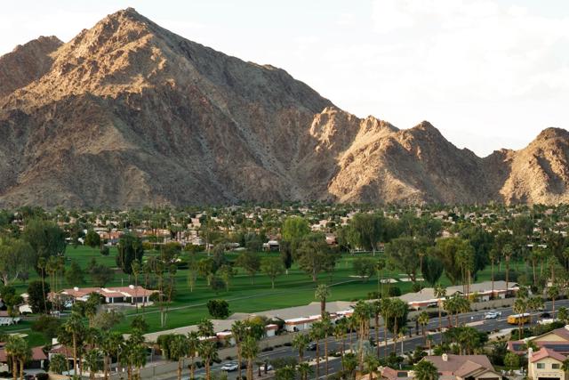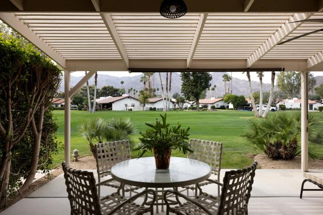 Perfectly positioned overlooking the 5th tee of the prestigious The La Quinta Country Club--former host of the Bob Hope Classic and now part of the celebrated AMEX PGA Tournament--this beautifully updated 3-bedroom, 2-bath residence offers refined desert living with breathtaking Santa Rosa Mountain and fairway views.Spanning approximately 1,558 square feet, the open-concept interior features soaring cathedral ceilings, hardwood floors, and expansive sliding doors that connect seamlessly to an extended patio--ideal for entertaining or enjoying front-row golf course vistas. The updated kitchen is appointed with quartz countertops, soft-close wood cabinetry, stainless steel appliances, and a generous island designed for gathering.The primary suite offers direct patio access and a spa-inspired bath with dual vanities and a walk-in rain shower. Two additional guest bedrooms provide comfort and flexibility for visitors or office space.A private gated courtyard with hot tub, natural gas BBQ, and outdoor dining area creates a secluded retreat. Additional features include an oversized epoxy-finished two-car garage, new washer and dryer, and access to a heated community pool.Ideally located near Old Town La Quinta, La Quinta Resort, PGA West, and world-class golf, dining, and tennis, this turn-key residence captures the essence of luxury desert living.