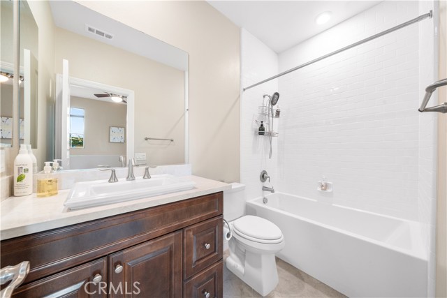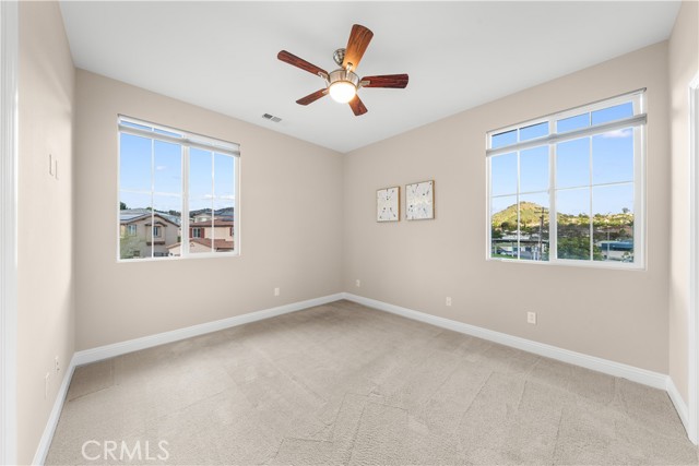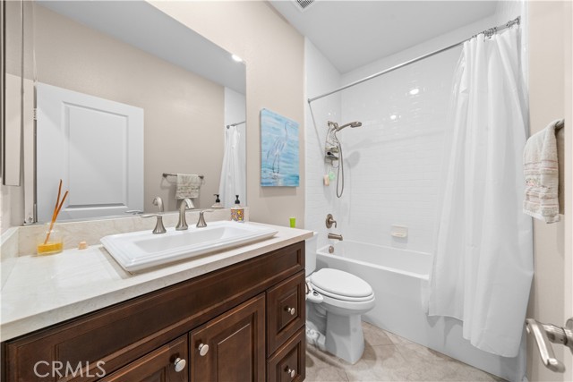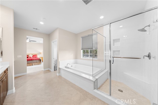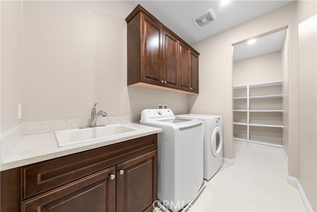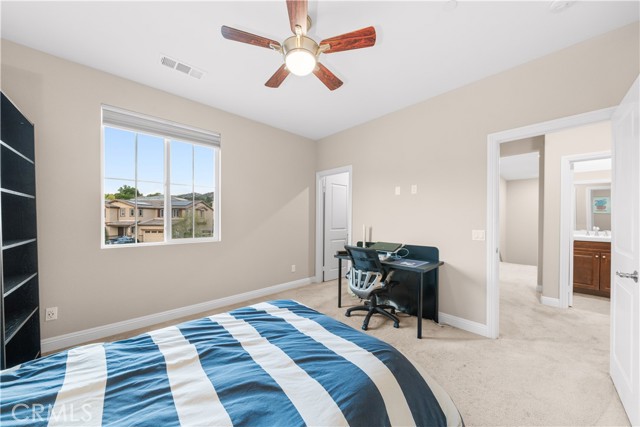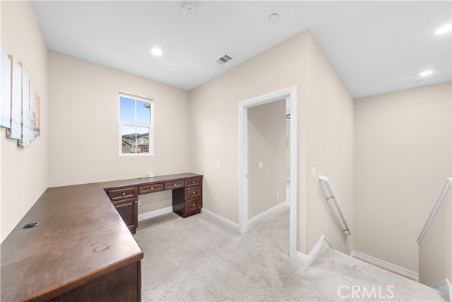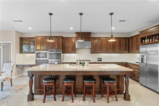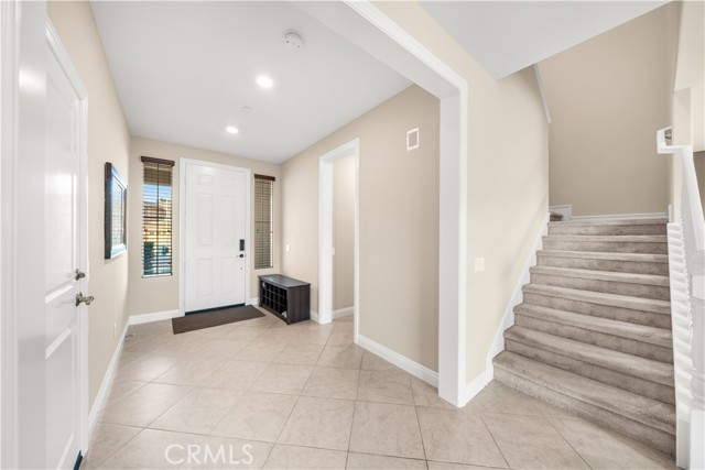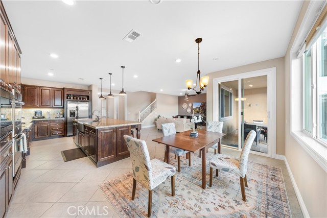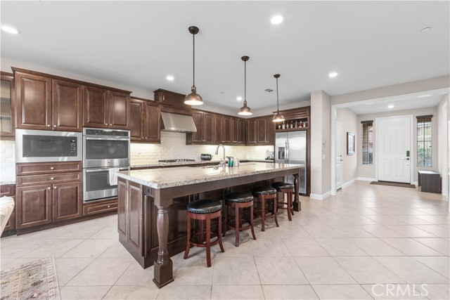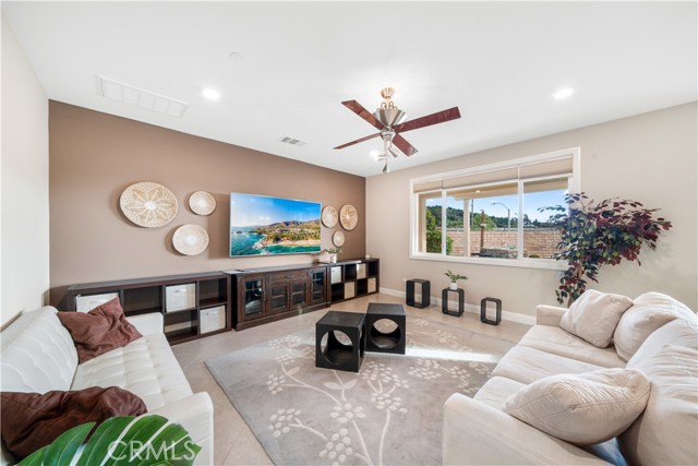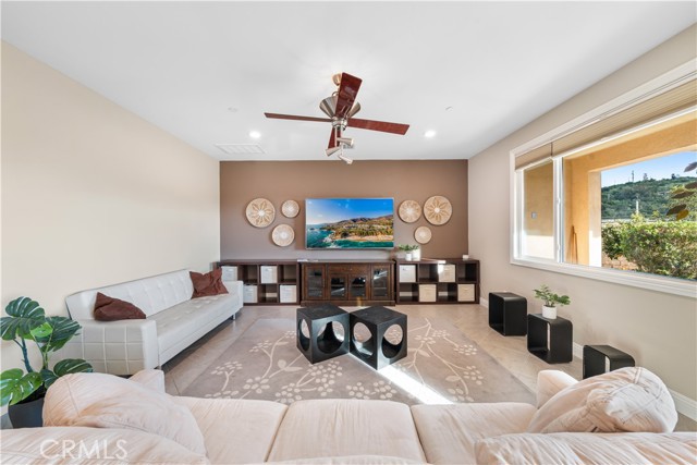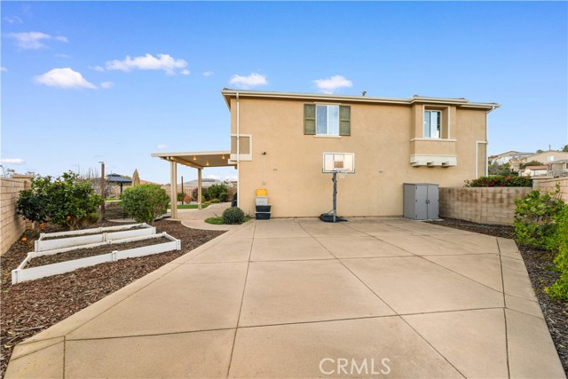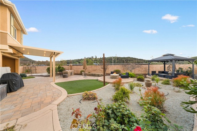 Welcome to 2023 Meadow Vista Place, a beautifully maintained 2016-built home tucked at the end of a quiet cul-de-sac in North Escondido, offering privacy and a peaceful neighborhood setting. Inside, the bright and spacious living room features soaring ceilings that create an open and inviting atmosphere. A beautifully designed kitchen anchors the main living areas, blending comfort and functionality for both everyday living and effortless entertaining. The rare tandem garage provides three parking spaces with dual access — including direct entry into the pantry and an additional hallway entrance for daily convenience. This home is equipped with solar, including a builder-installed system that has been fully paid off (lien release in process) and an additional leased system with a low monthly cost that is transferable to the new owner. Enjoy enhanced comfort with a whole house fan. The beautifully landscaped backyard is designed for relaxation and gatherings, featuring a California sunroom, patio, outdoor fireplace perfect for s’mores nights, gazebo, outdoor kitchen counter, BBQ area, a charming fountain, and many fruit trees. The expansive side yard offers exceptional versatility, perfect for recreation such as 3-on-3 basketball or a ping pong setup. The flexible floor plan includes a bedroom on the main level, ideal for guests or multigenerational living. Upstairs features a versatile den with built-in desks, perfect for a home office or study space, along with a dedicated laundry room complete with sink, built-in cabinets, and shelving for added storage and convenience. The spacious primary suite offers a large walk-in closet and a well-appointed bath with double sinks, soaking tub, and separate shower. A secondary ensuite and two additional bedrooms — all with walk-in closets — provide ample space for family or work-from-home needs. Located within 10 minutes from the highly regarded Escondido Charter High School & Classical Academy High School, ranked among the top charter high schools in California, this home is positioned in a community where education is highly valued and families prioritize access to strong academic opportunities.