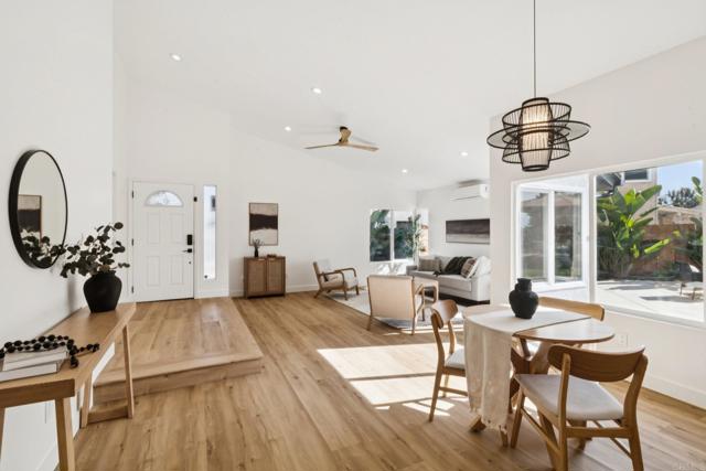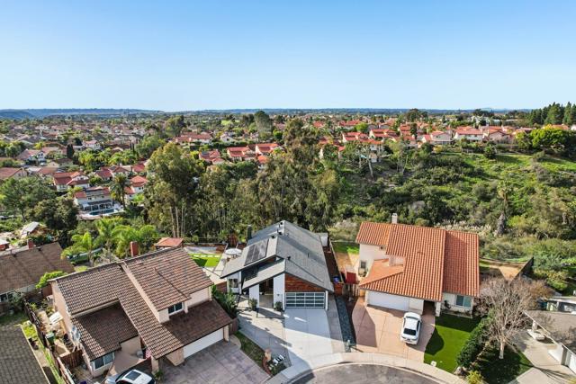 Located in the heart of Rancho Peñasquitos, this single-story modern ranch home is tucked away on a quiet cul-de-sac and set on an expansive 0.57-acre lot with sweeping canyon and sunset views. Offering privacy, space, and effortless indoor-outdoor flow, this beautifully remodeled residence blends comfort with contemporary style. Thoughtfully upgraded throughout, the home features luxury vinyl plank flooring, fresh interior and exterior paint, recessed lighting, and a bright open-concept layout designed for modern living. The designer kitchen showcases quartz countertops, soft-close cabinetry, a generous island, and upgraded dark stainless appliances seamlessly connecting to the family room for elevated everyday living and effortless entertaining. Bathrooms have been tastefully updated with quartz surfaces and refined fixtures, enhancing the home’s clean, sophisticated aesthetic. The true showpiece is the backyard, an entertainer’s dream framed by breathtaking canyon and valley views. Enjoy vibrant sunsets, designer landscaping, and expansive grounds that provide both serenity and opportunity. With ample space for gatherings, recreation, or potential future expansion, this outdoor setting is truly rare. Additional highlights include an extra finished interior attic storage area, a shed, full-house water filtration system, and modern energy efficiency throughout. Also equipped with a Tesla solar system, no HOA, and located within the highly acclaimed Poway Unified School District. Walking distance to Sundance Elementary, Mesa Verde Middle, and Westview High School. A private retreat where the sunsets steal the show.