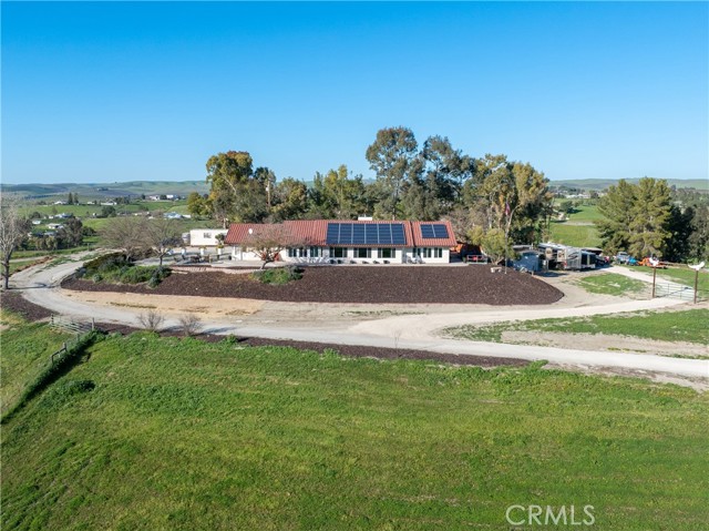 Welcome to 2245 Rancho Lomas Way, a picturesque ranch retreat nestled in the heart of Paso Robles’ Independence Ranch community. This expansive 2,260+/- single-level home, set on 10+/- acres, is a sanctuary for those seeking a blend of rustic charm and modern convenience. As you step through the front door, you are greeted by a spacious living room, boasting a wood-burning stove set against a brick accent wall, cathedral ceilings, and stunning views of the wine country landscape. Natural light floods the space, highlighting the thoughtful upgrades and meticulous attention to detail. Adjoining the living room is a dining area seamlessly connected to the remodeled kitchen. Here, culinary dreams come alive with updated cabinets, granite countertops, vinyl plank flooring, and a chic backsplash, all complemented by recessed lighting. The kitchen is a true heart of the home, designed for both intimate family dinners and grander gatherings as the French door opens to the rear yard where just around the corner, an artificial turf patio with a jacuzzi tub invites relaxation and social evenings under the stars. The primary suite is a haven within the home, featuring cathedral ceilings and an attached bonus room—ideal for an office or fitness room—offering inspiring views of the sprawling hills. The primary en-suite bathroom is equally impressive with a tiled step-in shower, a large closet with built-in vanity, and ample cabinetry. The home also includes 2 additional bedrooms, each with vinyl plank flooring and unique touches such as a bonus playroom or study area in the 2nd bedroom, and a Jack and Jill bathroom attached to the 3rd bedroom. The 2-car garage has been converted to a game room (video games are to be included) boasting a full kitchen and separate entrance. The property's exterior is just as meticulously designed, featuring a carport adjacent to a brick patio set amongst refreshed landscaping with recently added fencing for privacy. Equestrian enthusiasts will be drawn to the graded area with single stalls, various fenced spaces, and water connections, offering a variety possibilities to customize and create an equine environment. Owned solar panels and numerous outbuildings, including a Seatrain, provide functionality and opportunity, making this home not just a residence but a lifestyle choice. Embrace the opportunity to own a piece of Paso Robles serene landscapes, where many sunsets may bring peace and a glimpse of the endless potential!