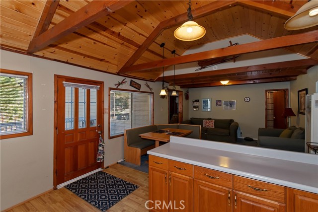 Nestled among the towering pines of Green Valley Lake, this inviting mountain home offers the perfect blend of comfort and natural beauty. From the moment you arrive, the lush forested setting sets the tone for the peaceful lifestyle that awaits inside. The main level is designed for both relaxed living and easy entertaining. The warm and welcoming living room centers around a stunning river rock fireplace, perfect for cozy evenings after a day spent exploring the surrounding wilderness. A separate family room provides additional space to spread out, while the dining area flows naturally from the well-appointed kitchen, making gatherings a breeze. Bedroom #1 and a full bathroom round out the main floor, offering flexibility for guests, a home office, or single-level living when needed. Upstairs, the primary bedroom serves as a true retreat, complete with a private balcony where you can sip your morning coffee and soak in sweeping forested views. A third bedroom and a second full bathroom complete the upper level, providing comfortable accommodations for family and visitors alike. The attached one-car garage adds convenience year-round, and with built-in storage and the laundry located inside the garage, day-to-day living is as practical as it is enjoyable. Whether you're searching for a full-time residence or a mountain getaway for hiking, off-roading, fishing, swimming, etc., this Green Valley Lake gem delivers the tranquility and charm that mountain living is all about.
