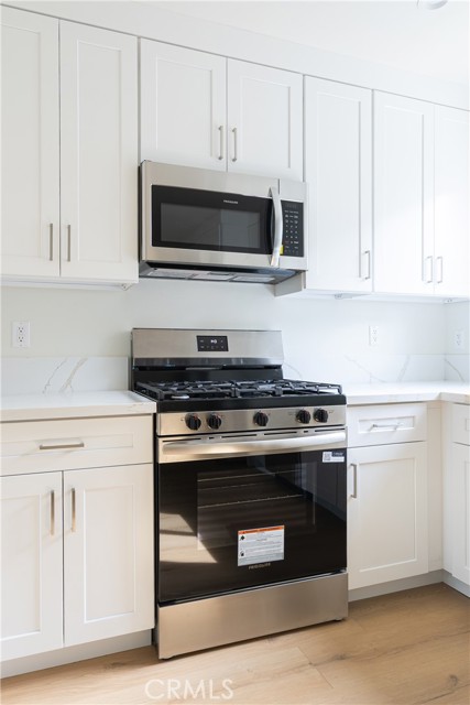 Welcome to this beautifully fully renovated 2 bed, 1 bath apartment at 1065 E Sazier Ave, Unit 101, located just minutes from downtown Burbank. This first-floor unit provides a spacious modern living with large windows and abundant natural light. The open-concept living and kitchen area features laminate flooring and a brand-new kitchen with white shaker cabinets, quartz countertops, and stainless steel appliances, including a gas stove, refrigerator, dishwasher, and microwave. Enjoy the convenience of an in-unit stackable washer and dryer and split-unit HVAC with three zones for customized comfort. The spacious bathroom is beautifully finished with large-format tile, a modern vanity with quartz counter, and a walk-in shower. Both bedrooms offer generous closet space. This unit has been completely gutted and rebuilt, including new windows, roof, stucco, electrical, plumbing, HVAC, and all interior finishes. Limited-time move-in special: $1,000 credit applied to first month’s rent for qualified applicants until March 3.