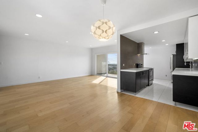 Enjoy spectacular views in the heart of West Hollywood from this stunningly remodeled penthouse with a spacious floor plan featuring two bedrooms and two bathrooms. This southwest corner unit on the top floor has sleek, modern finishes throughout including a washer/dryer inside the unit, gorgeous maple-colored hardwood floors, recessed lighting, dual pane windows, Caesarstone counters, walnut La Cava bathroom vanities, and Artemis ceiling fan. This home owner's dream has tons of closet space, a large south-facing sunny balcony, and a sensational kitchen with European cabinets and stainless appliances, including a top of the line LG washer/dryer. Enjoy energy efficient central heating and cooling with a Nest thermostat. Park your cars in the building's secure subterranean garage and you're just steps away from nearby restaurants (WeHo Bistro, Dialog Cafe) shopping (Trader Joes, CVS) and fitness clubs (Equinox, John Reed). Hurry, this one won't last!