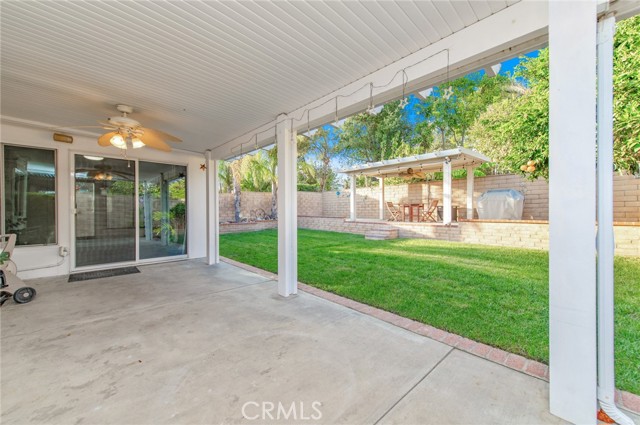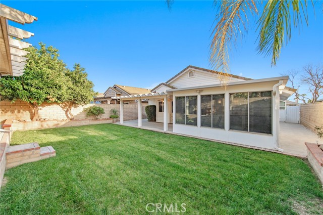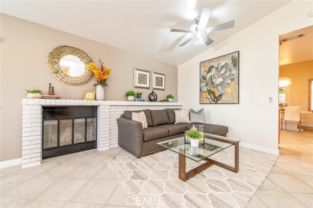 Rare opportunity to own a beautiful single-story home in Rancho Cucamonga — no stairs to climb! This move-in ready home features 3 bedrooms, 2 bathrooms, and an additional enclosed patio/sunroom, offering expanded and versatile living space perfect for any family. The home has been freshly painted inside, offering a clean and refreshed look. As you enter, you’re greeted by a spacious living room highlighted by a cozy block-wall fireplace — perfect for relaxing evenings. The gourmet kitchen is equipped with an oven, microwave, granite countertops, and ample cabinetry, making it ideal for everyday living and family gatherings. Adjacent to the kitchen is a dining area accented with a beautiful chandelier. The large, enclosed patio/sunroom provides flexible space that can be used as a home office, gym, or bonus room, with direct access to the backyard. The elegant primary suite features its own private bathroom with dual sinks, a separate soaking tub and shower, and a generously sized closet to accommodate wardrobes of any size. Down the hallway are two additional spacious bedrooms and a full bathroom. Step outside through the sliding glass door to a private, low-maintenance backyard complete with covered patios and a ceiling fan — perfect for entertaining and family gatherings. Conveniently located with easy access to shopping and restaurants, and within walking distance to Ralph and 99 Ranch Market. Don’t miss your chance to tour this beautiful home — it won’t last long!