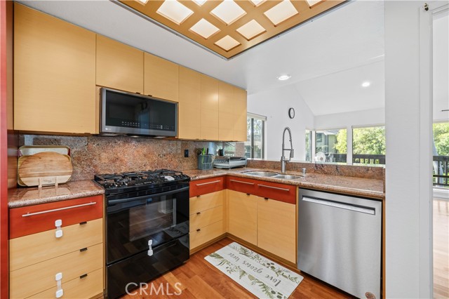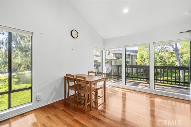 BEAUTIFUL FULLY FURNISHED HOME WITH LONG DRIVEWAY ON CUL-DE-SAC WITH PANORAMIC VIEWS OF LARGE GREENBELT THAT LEADS TO GOLF COURSE! Open floor plan with smooth cathedral ceilings, recessed lighting, and bright with natural light from many large windows. Entry level includes a great room that has an upgraded kitchen, living room with flat screen TV, den, dining room, and powder room. Flooring is wood upstairs, vinyl plank downstairs, and tile in bathrooms. Next to kitchen is an inside laundry room with washer and dryer, and a door to a 1-car carport. Gated front courtyard has a door with direct access to 1-car garage that includes storage shelves. Sliding glass door from dining room opens to outdoor deck where you can sit, relax, and take in the expansive views of the greenery. Remodeled kitchen is open to dining room and has granite counters, stainless-steel kitchen appliances, and cabinets and drawers fully stocked with pots and pans, glasses, plates, utensils and everything you need. Built-in cabinets line both sides of the staircase, and at base of stairs is door to back patio and on either side two bedrooms with private ensuite bathrooms. Large Primary bedroom has walk-in closet, vanity area and privacy door to walk-in shower and toilet, and a slider to back patio. The second bedroom has built-in shelves and cabinets and privacy door to bathroom with shower in tub. A rare opportunity with views of greenery and nature all around! House in acclaimed Irvine School District, including University High. Two community pools and spas. Conveniently located near UCI, William Mason Park, John Wayne Airport, Newport Beach, Fashion Island and walking distance to shops and entertainment. Water, trash, and exterior maintenance included.