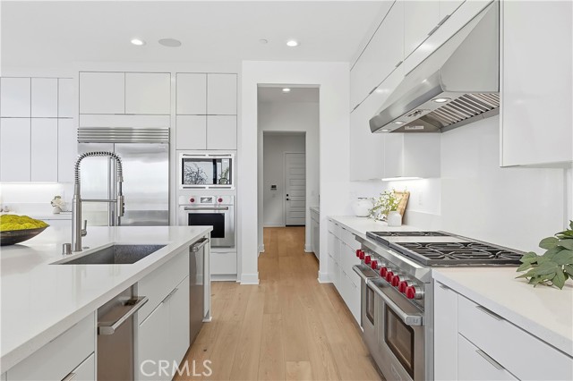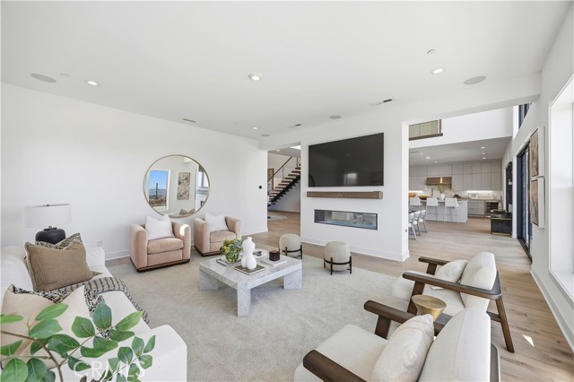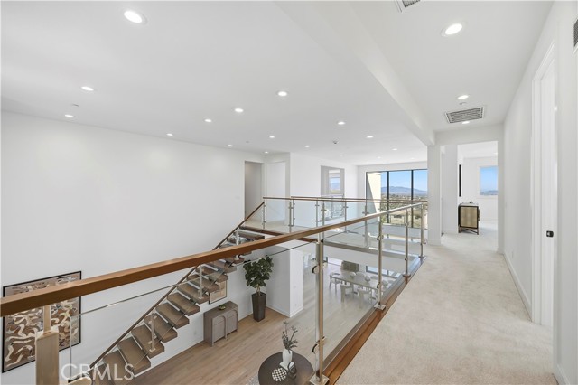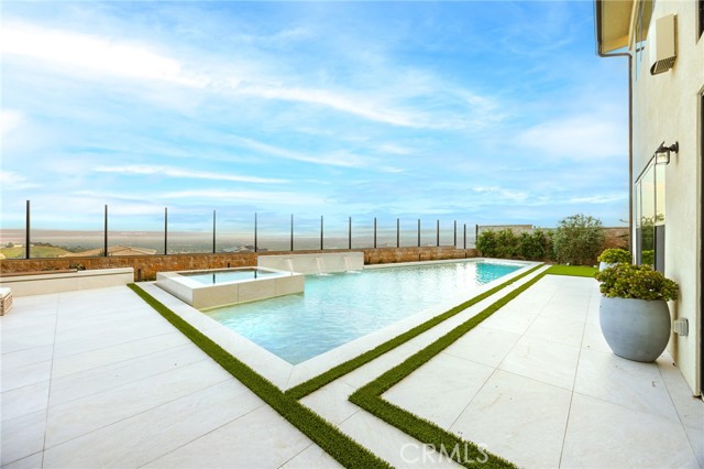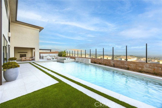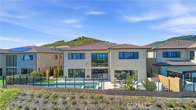 Brand-new, never lived-in estate located in the prestigious guard-gated community of Westcliffe at Porter Ranch. Situated on a premier 10,409 sq ft lot and offering approximately 5,200 sq ft of refined living space, this highly upgraded residence stands apart from typical resales. A grand entry framed by mature palm trees creates an elegant Southern California arrival. The open-concept floor plan features soaring ceilings, wide-plank flooring, expansive glass, a dramatic floating staircase, and a striking double-height glass wall. The chef’s kitchen is appointed with quartz countertops, an oversized island, premium stainless steel appliances, soft-close cabinetry, and a built-in wine refrigerator. The family room opens seamlessly to the backyard through multi-panel sliding doors. The newly completed backyard showcases a custom saltwater linear pool with elevated spa, professional landscaping, and mountain views — delivering a true resort-style setting. Additional upgrades include integrated surround sound and enhanced security system. Located within a secure guard-gated enclave, close to The Vineyards shopping center, reputable private schools, award-winning public schools, and convenient access to the 118 & 405 freeways.