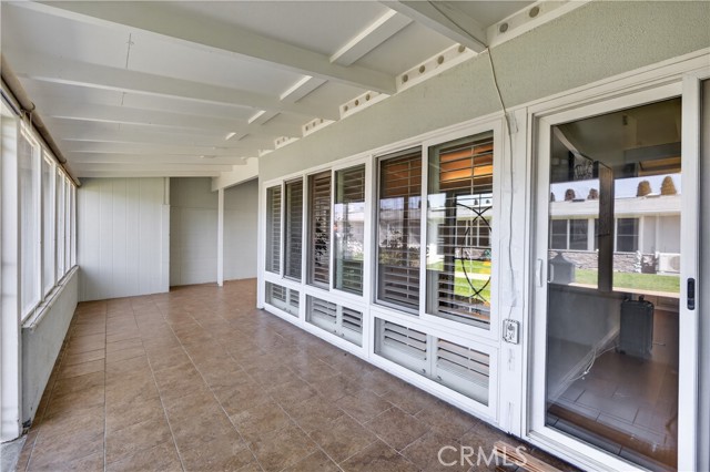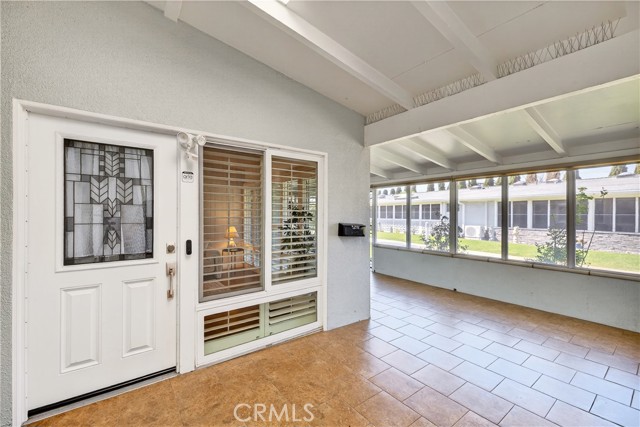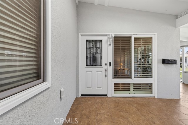 This beautifully maintained 2 bedroom, 1 bathroom patio home in Mutual 3 blends comfort and function with inviting indoor and outdoor spaces. The entry begins at a generously sized, fully tiled patio featuring privacy shades, dual pane windows, and a large storage unit—creating a welcoming and practical outdoor retreat. Step inside to a bright interior highlighted by a skylight and a custom leaded glass front door. The living room showcases vaulted ceilings, luxury laminate flooring, dual pane windows, and an A/C heat pump for year-round comfort. The updated kitchen offers a well-designed peninsula layout with granite countertops, refreshed hardware, a standard cooktop, newer white appliances including a dishwasher and microwave, and a solar tube that enhances the natural light. The bathroom has been modified with a convenient cut-down shower and an additional solar tube. Plantation shutters throughout and A/C heat pumps in both the living room and bedroom add to the home’s thoughtful improvements. Situated within a secure, guard-gated senior community, residents enjoy access to exceptional amenities including a 9-hole golf course, pool and spa, fitness center, pickleball and bocce ball courts, billiards, table tennis, shuffleboard, an amphitheater, and six clubhouses supporting art studios, sewing and craft rooms, wood shops, lapidary, and more than 200 clubs. Additional conveniences include a library, bookstore, credit union, health care center, pharmacy, and post office. Carport 44, Space 10.